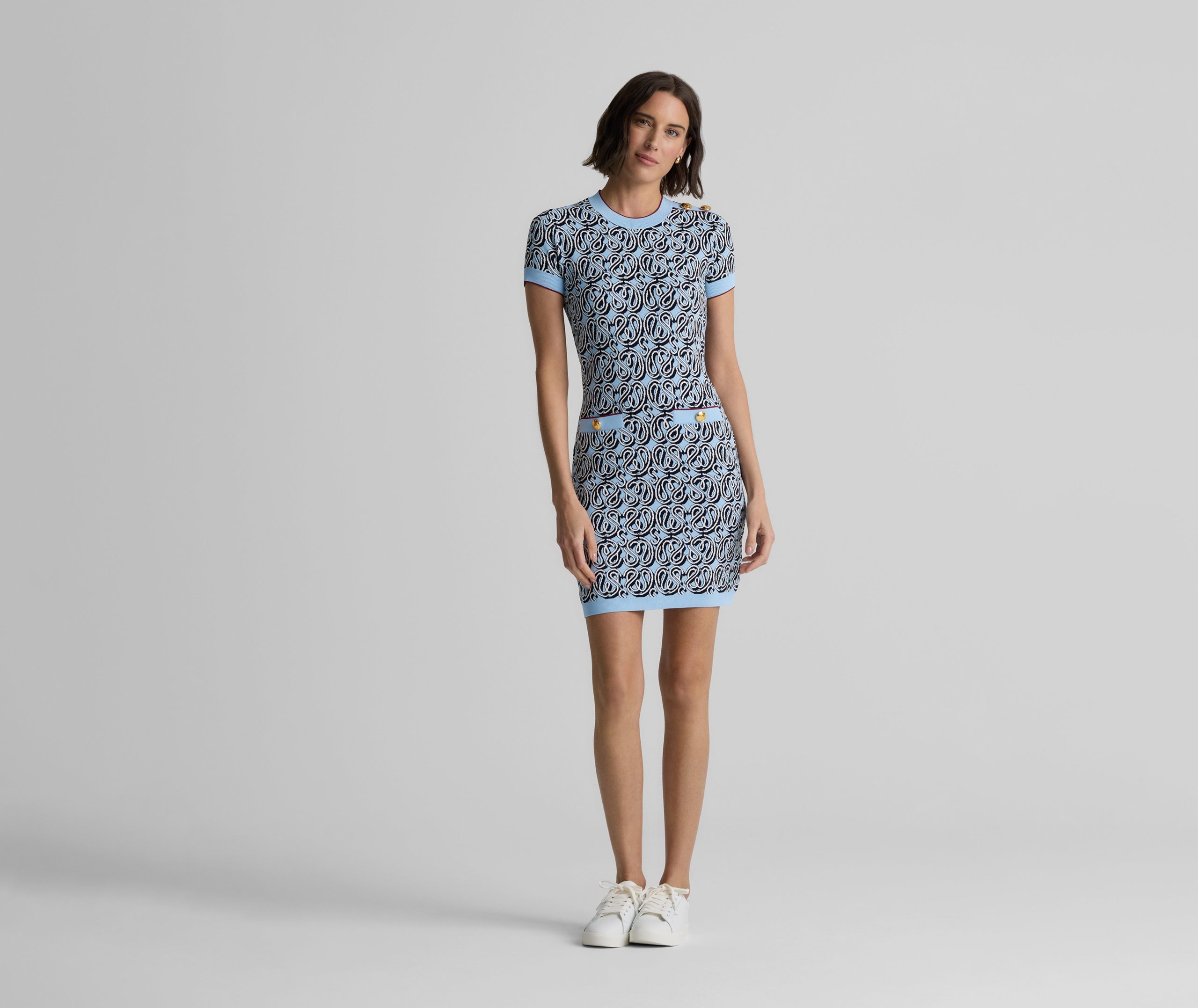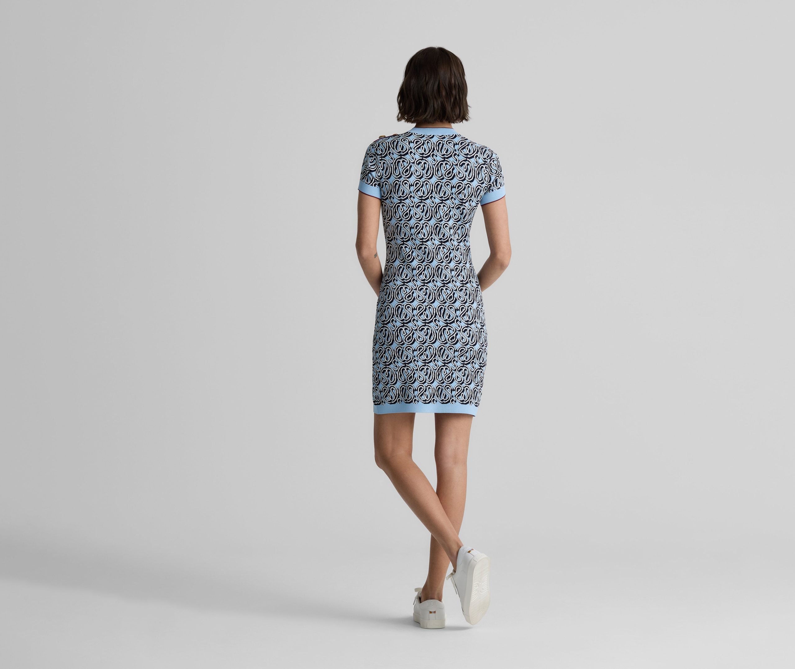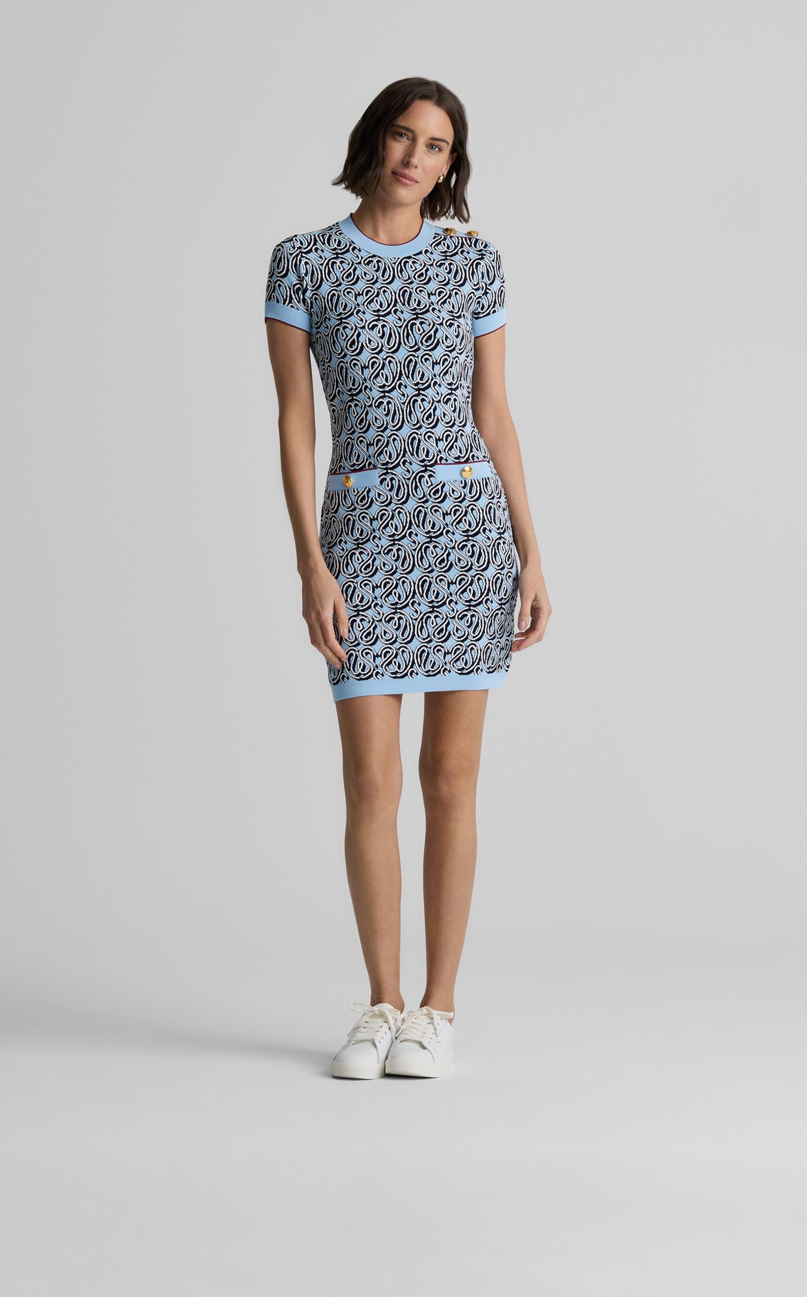 Created in an exclusive collaboration with influential golf brand Malbon, the Bekah’s customized logo print brings timeless luxury to on-the-course moments and other elevated afternoon activities alike. Logo-embossed gold buttons add to the sophistication of the all-over pattern while the curve-hugging fit, crew neckline, and t-shirt sleeves make this dress supremely wearable for a multitude of casually elegant moments.