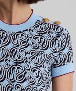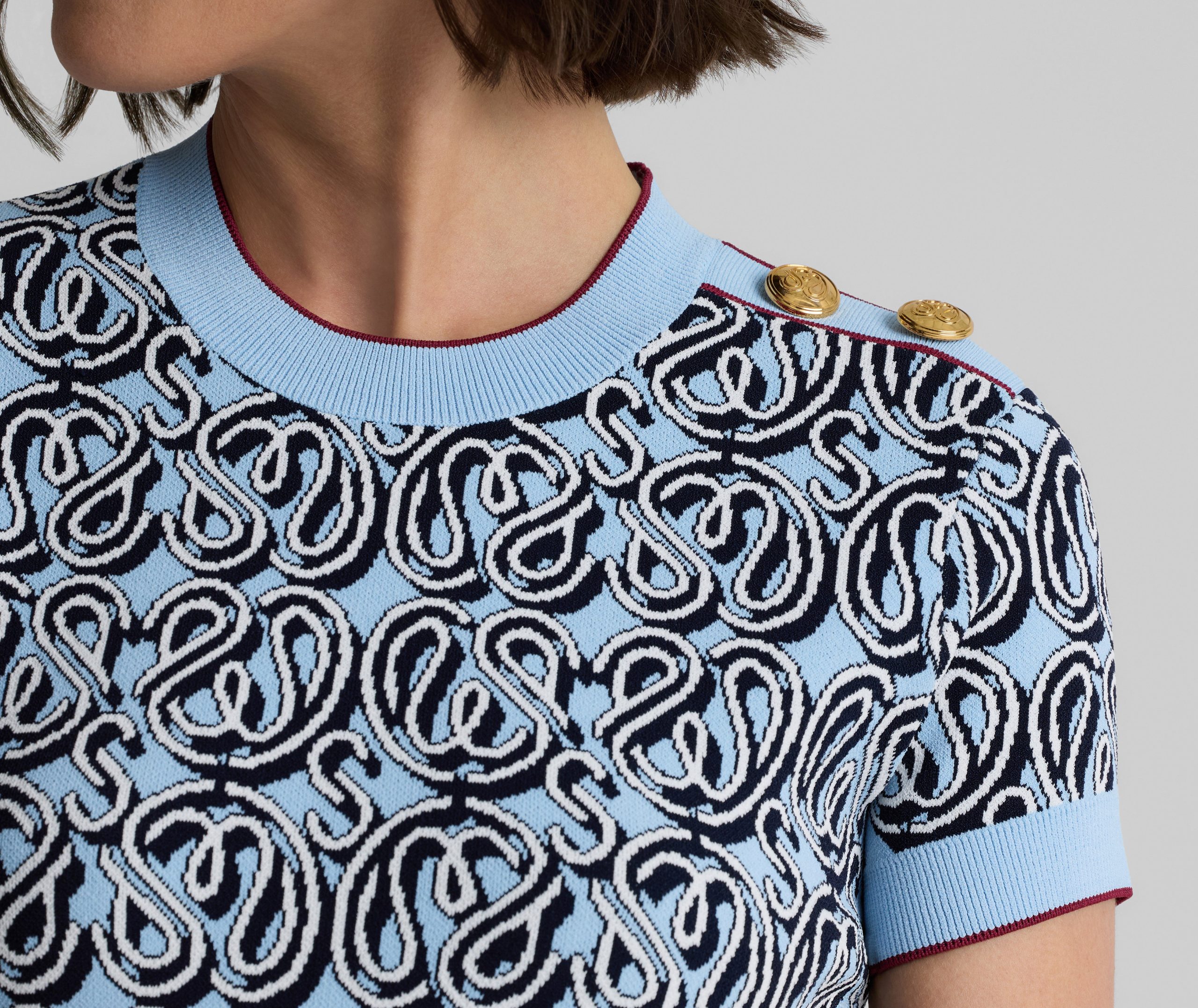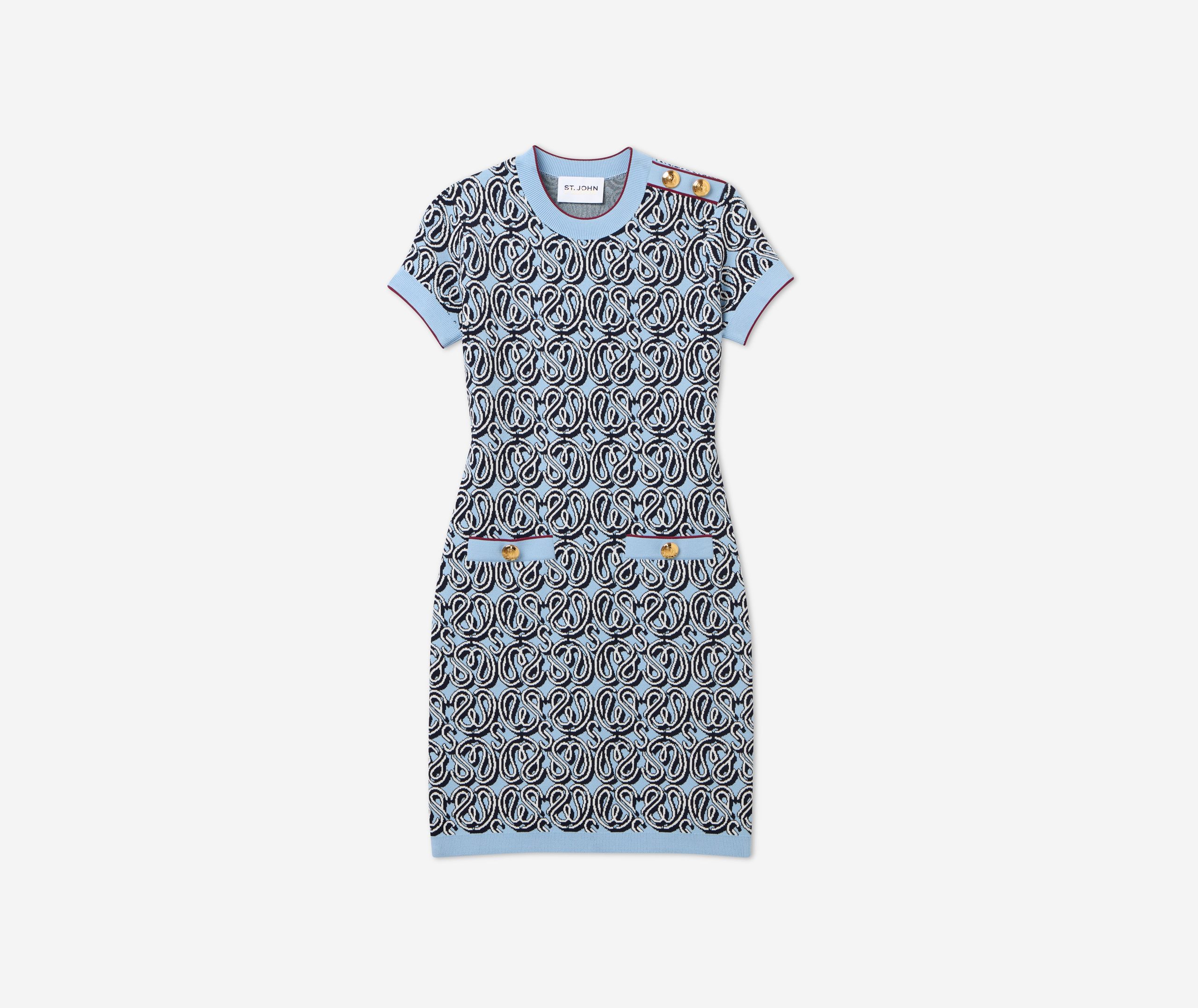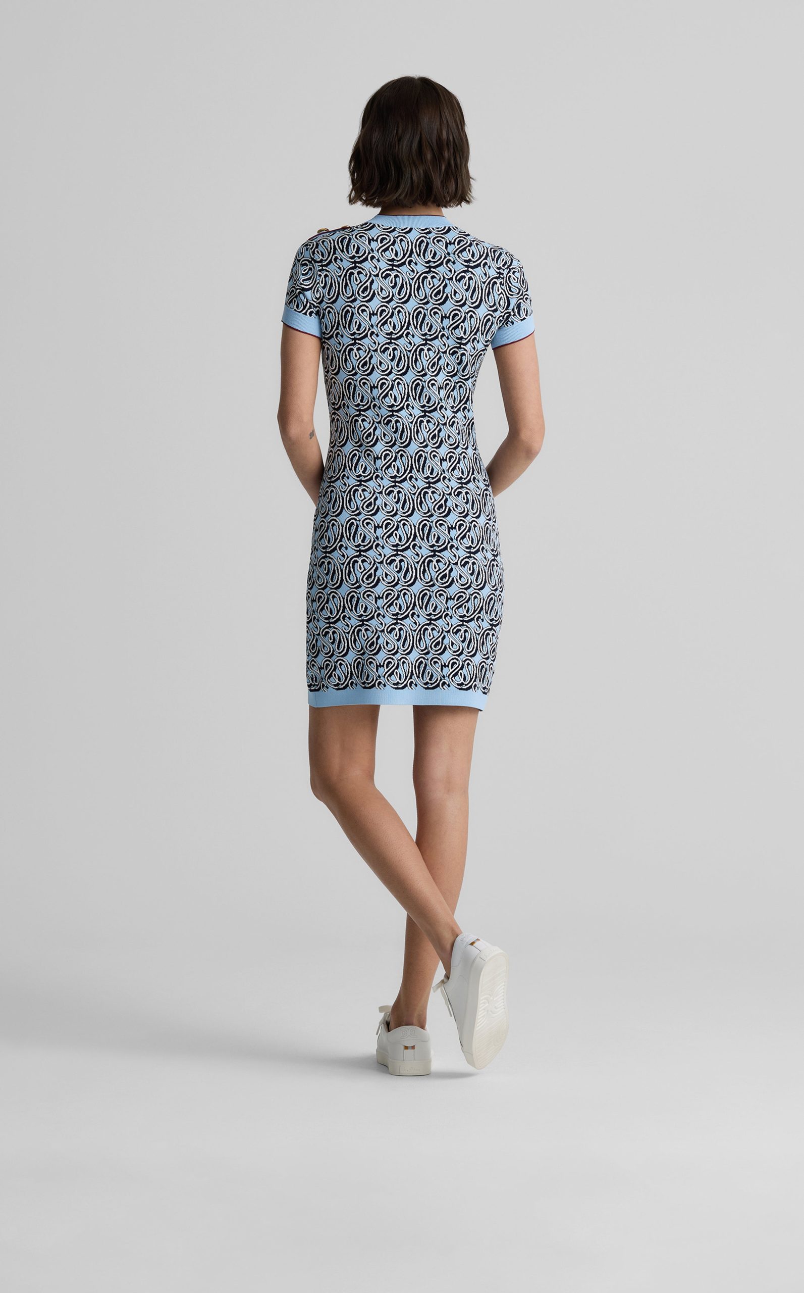 Created in an exclusive collaboration with influential golf brand Malbon, the Bekah’s customized logo print brings timeless luxury to on-the-course moments and other elevated afternoon activities alike. Logo-embossed gold buttons add to the sophistication of the all-over pattern while the curve-hugging fit, crew neckline, and t-shirt sleeves make this dress supremely wearable for a multitude of casually elegant moments.