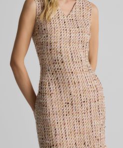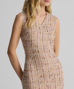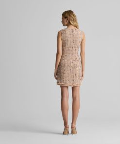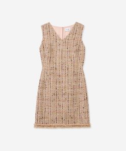 Classical yet commanding, the Betty has the trademark elements of a timeless sheath, including its form fitting sleeveless silhouette and graceful V-neckline. However, it also boasts a few bold signatures, like its subtly shimmering texture that elegantly catches the light and its fringe hem, which adds a whimsical touch. This dress embodies elegance all on its own, but creates the most elevated set when worn with our matching Susan Jacket.