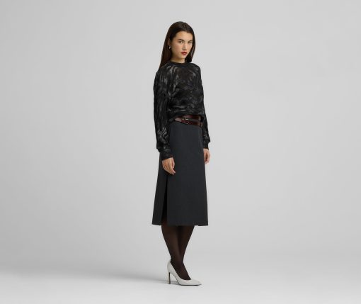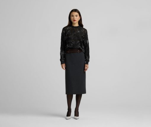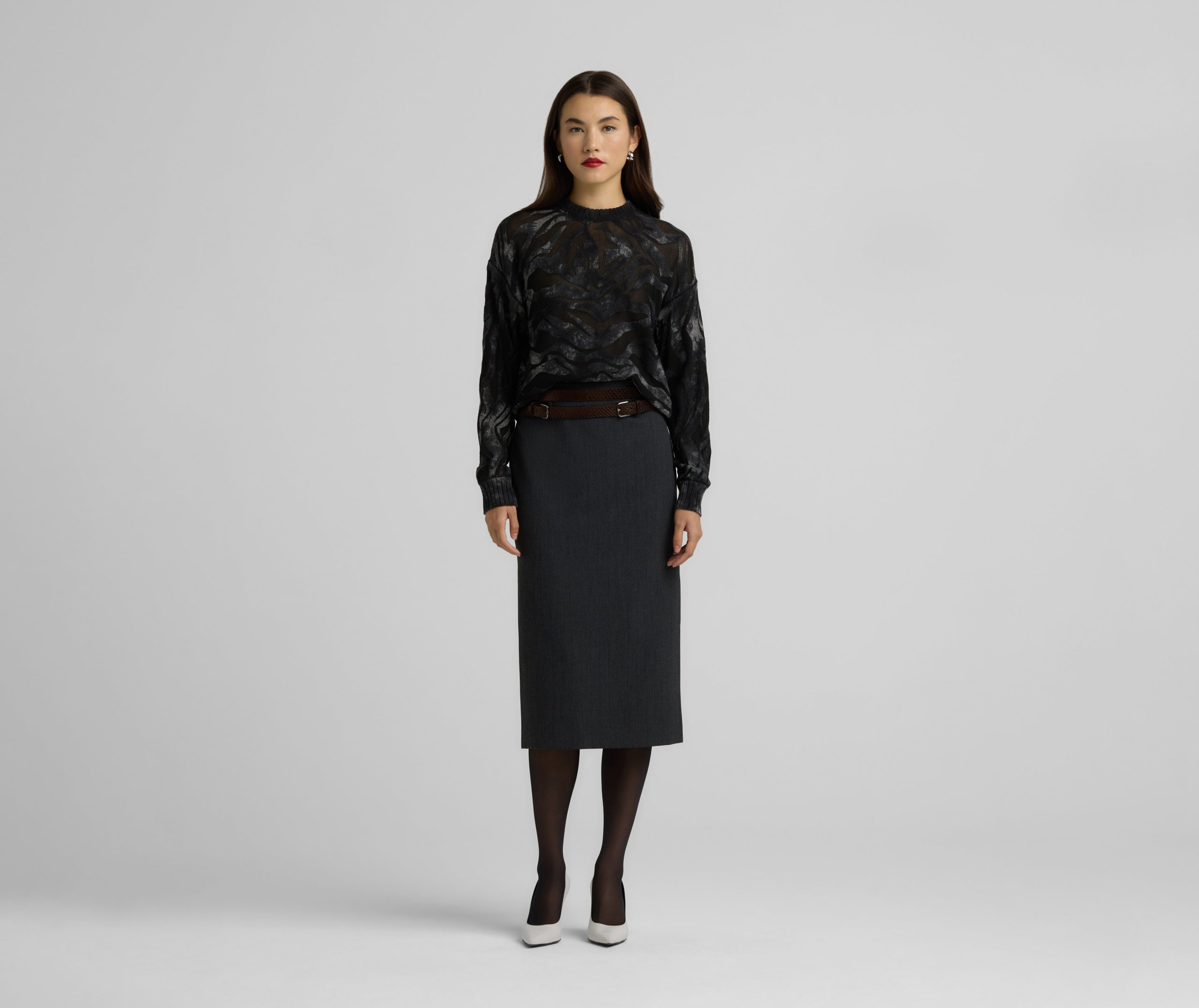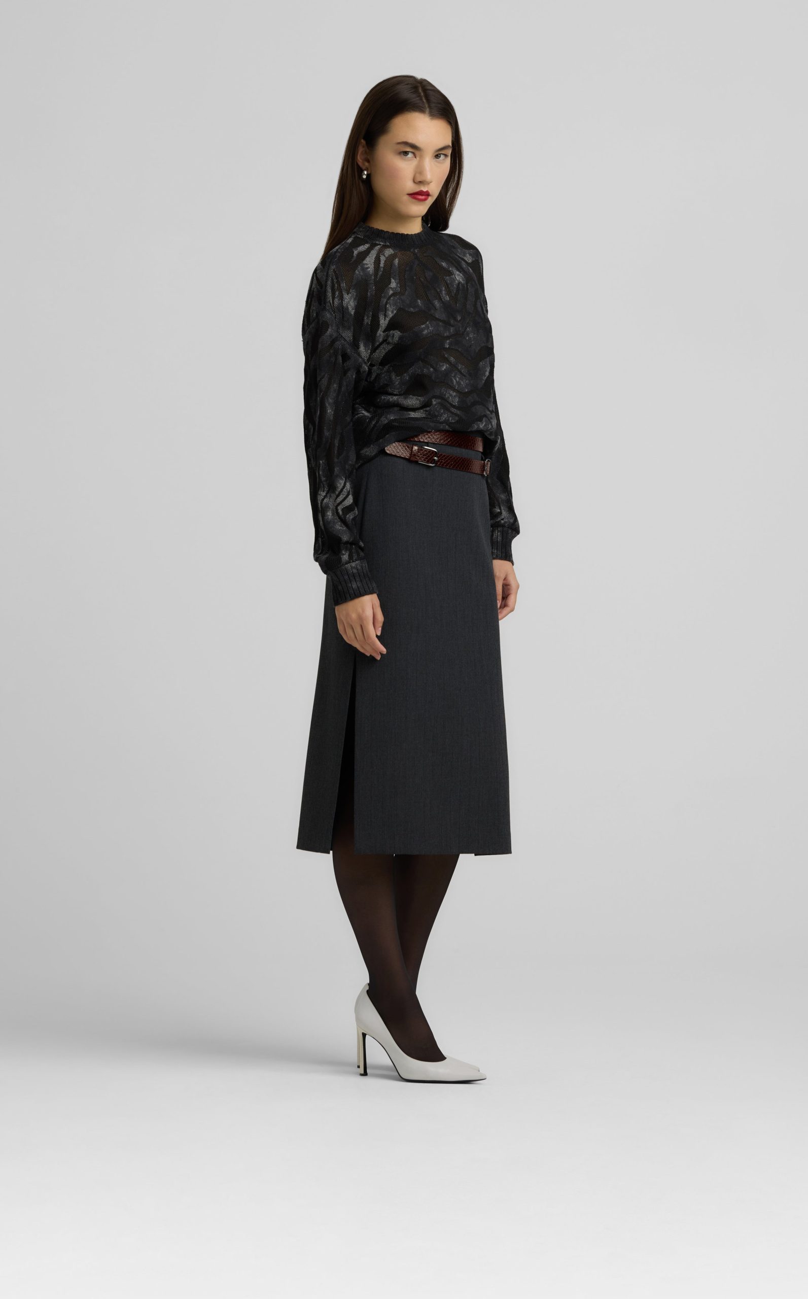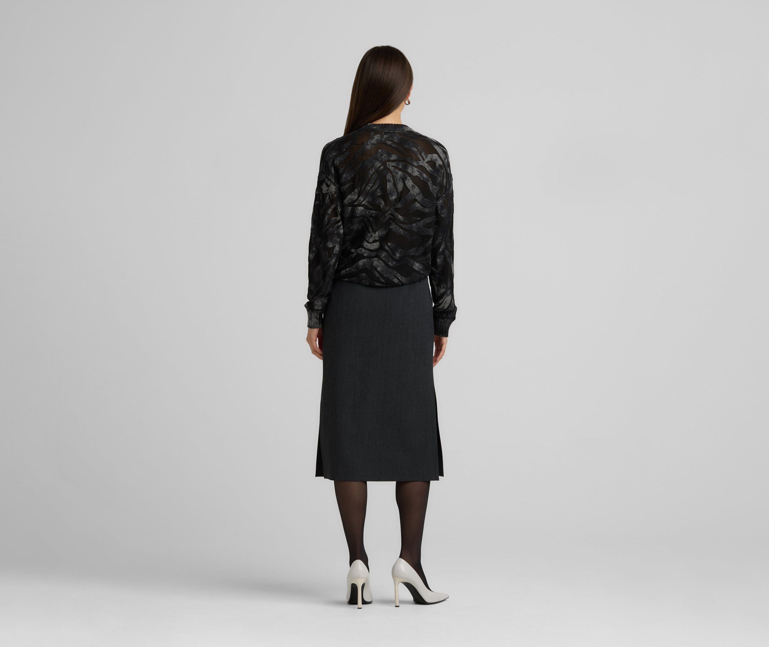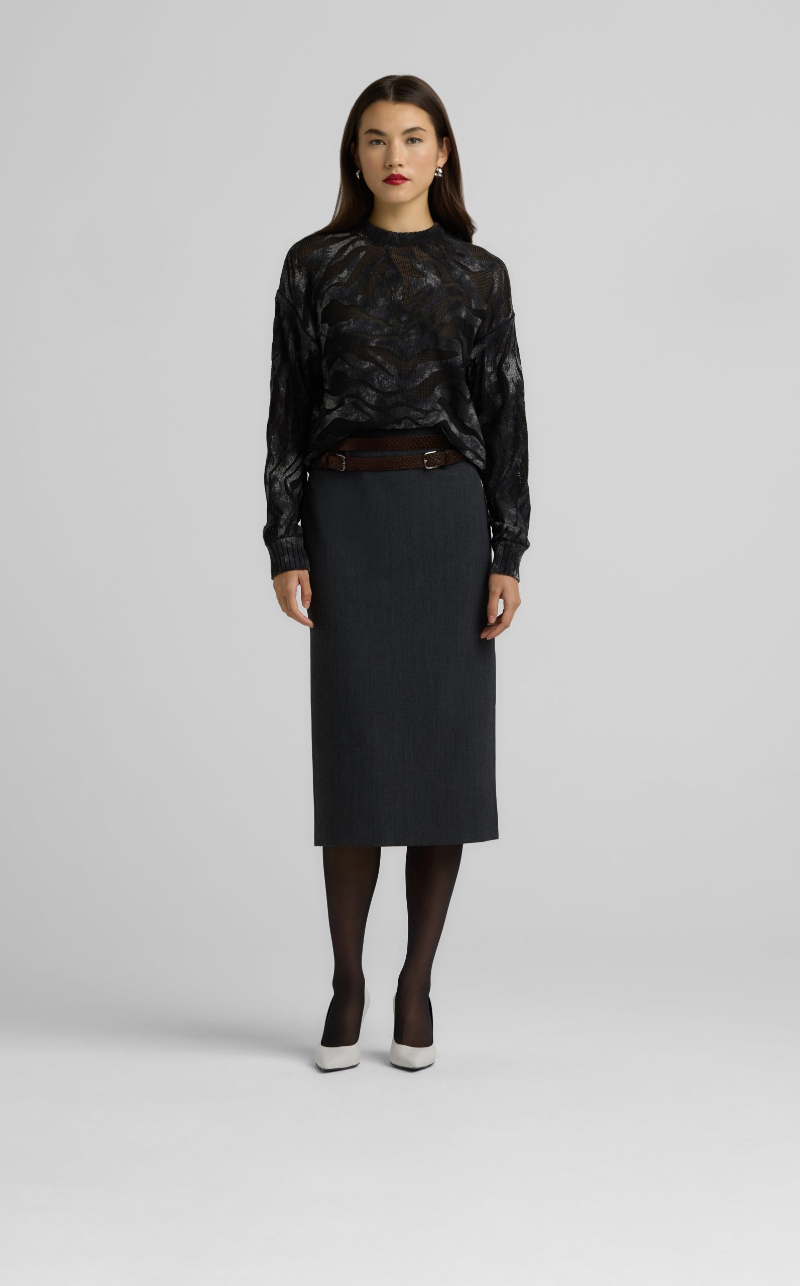 Animal print at its chicest. This crewneck cotton-blend sweater features burned out zebra stripes, reimagining the familiar favorite in a tonal top.All Sales are Final. No Returns or Exchanges.