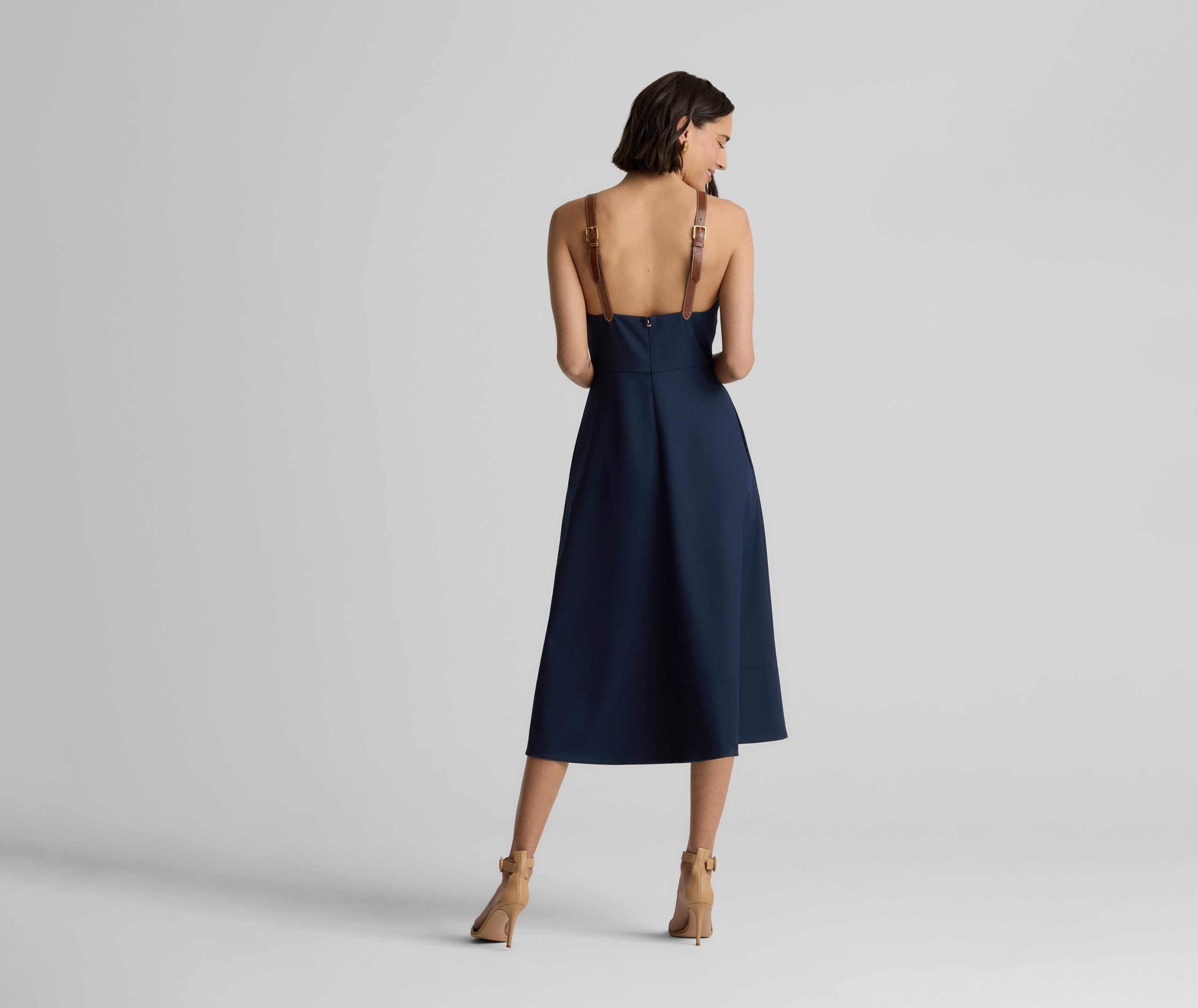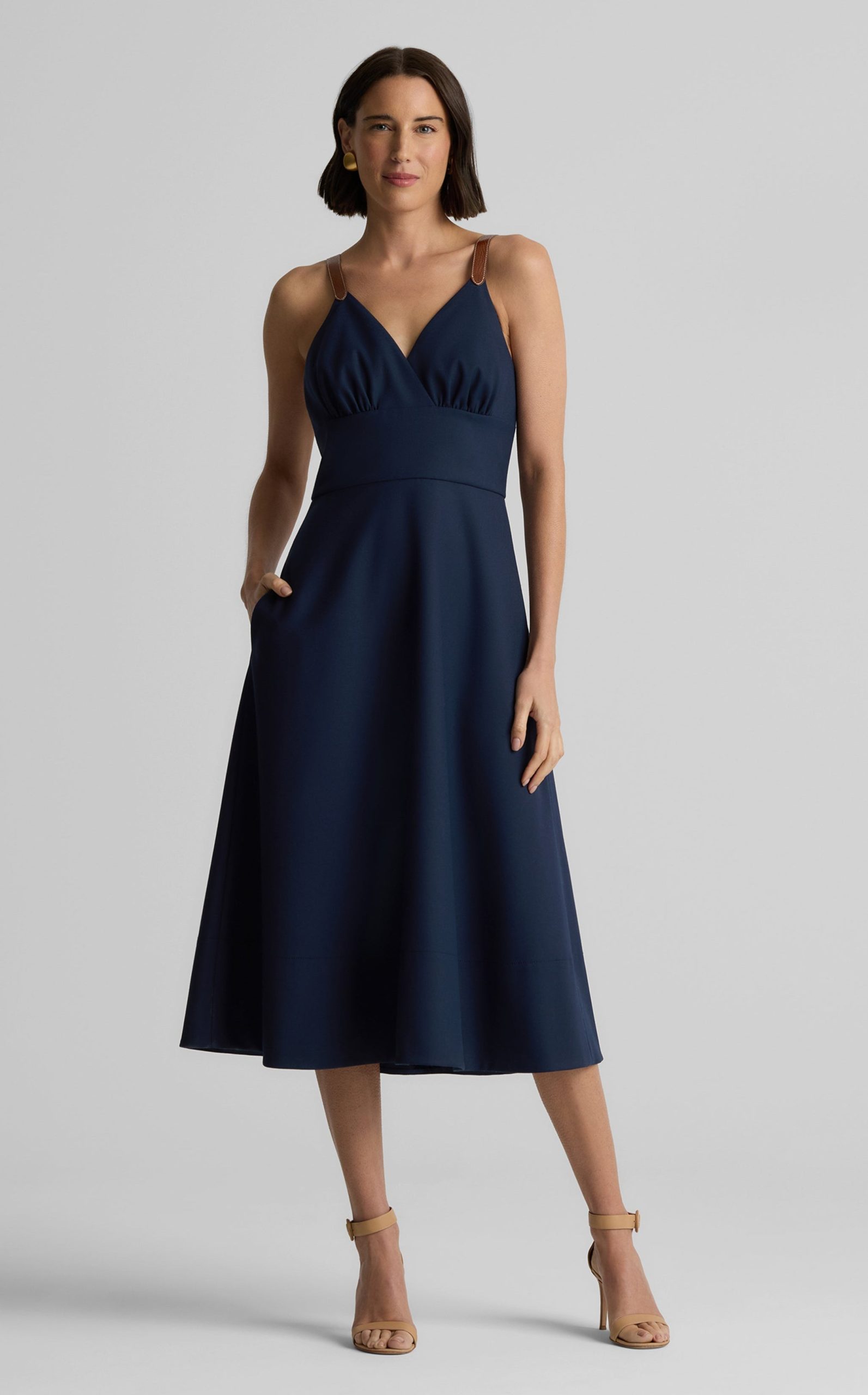 Sleek Stretch Gabardine meets luxe leather in this supremely wearable dress you’ll keep in rotation year-round. With its graceful v-neckline, nipped-in waist, and skirt that elegantly floats away from the body, the Emerson offers a flattering fit plus a bit of bold edge that shifts seamlessly from day to night.