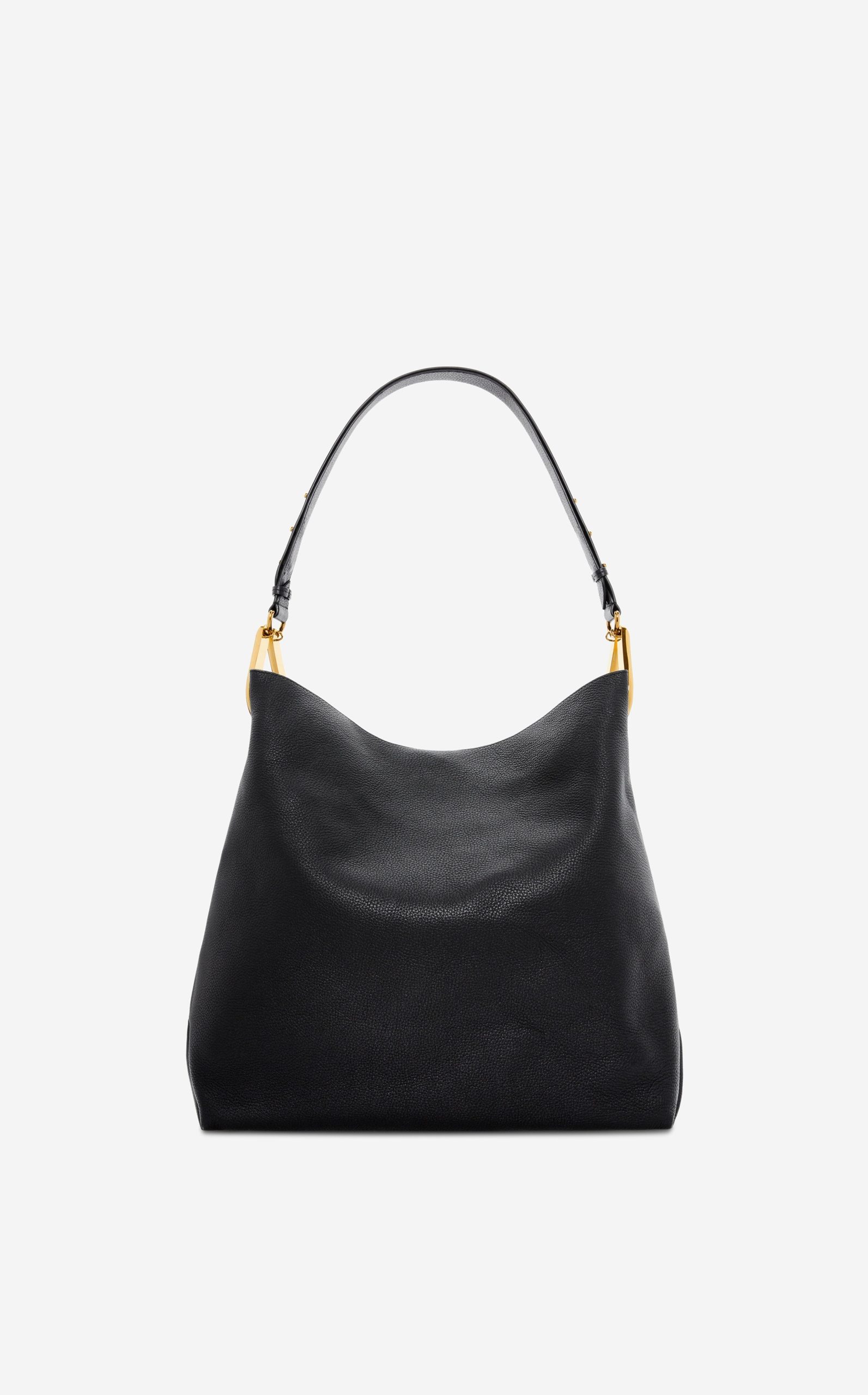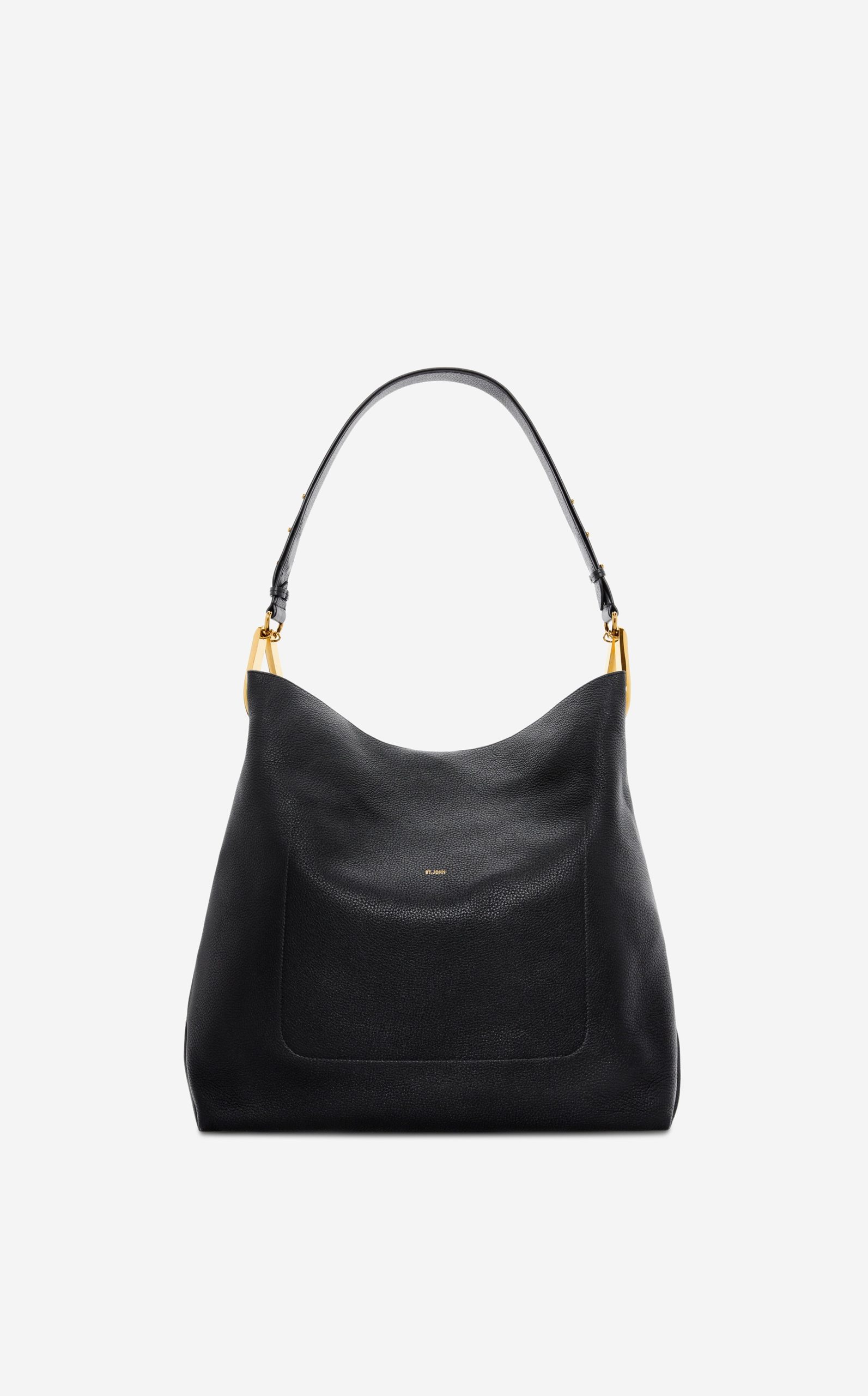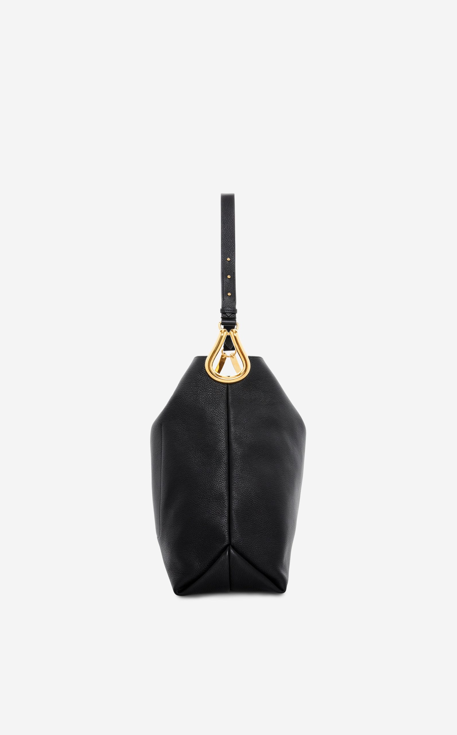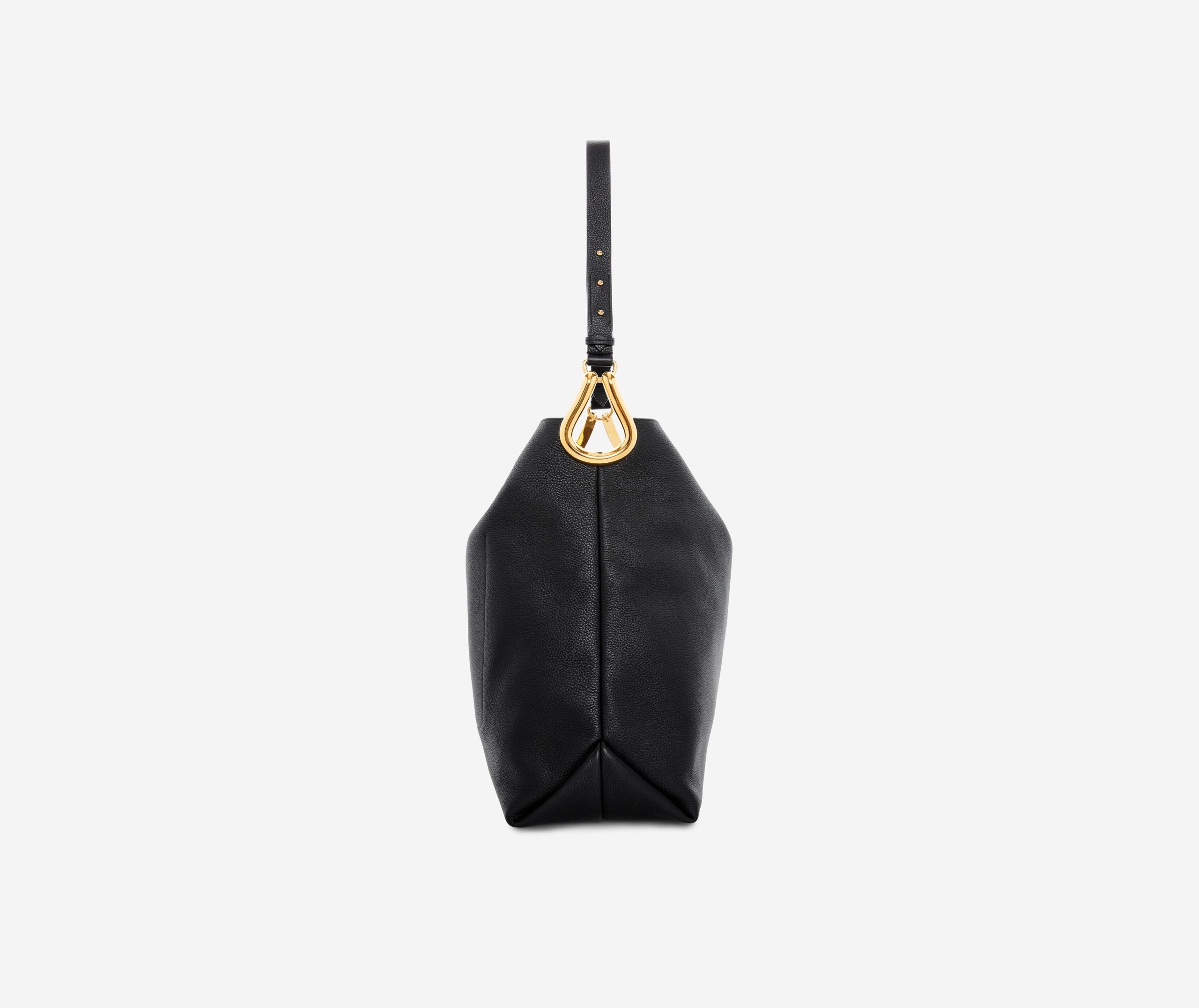 Leather hobo bag in grainy leather with notched top handle, signature loop design at sides, gold-tone accents, and interior side pocket.Modern, versatile and elevated; meet the perfect carryall in a roomy silhouette. Offers complimentary delivery and returns.Delivery and Return Policy