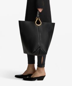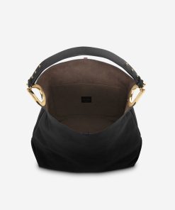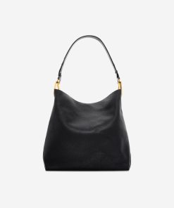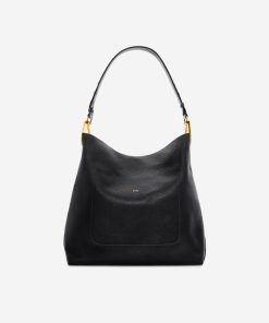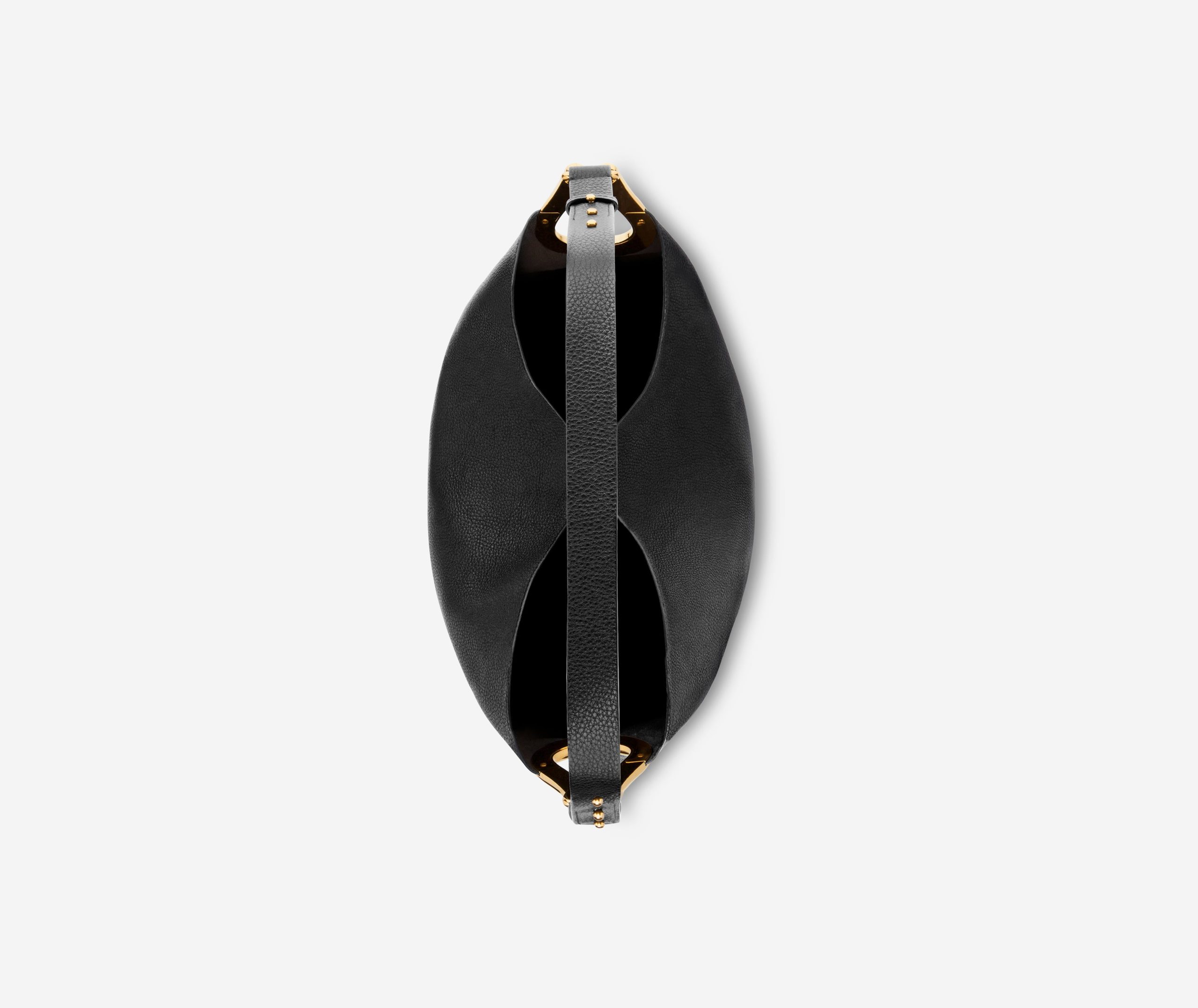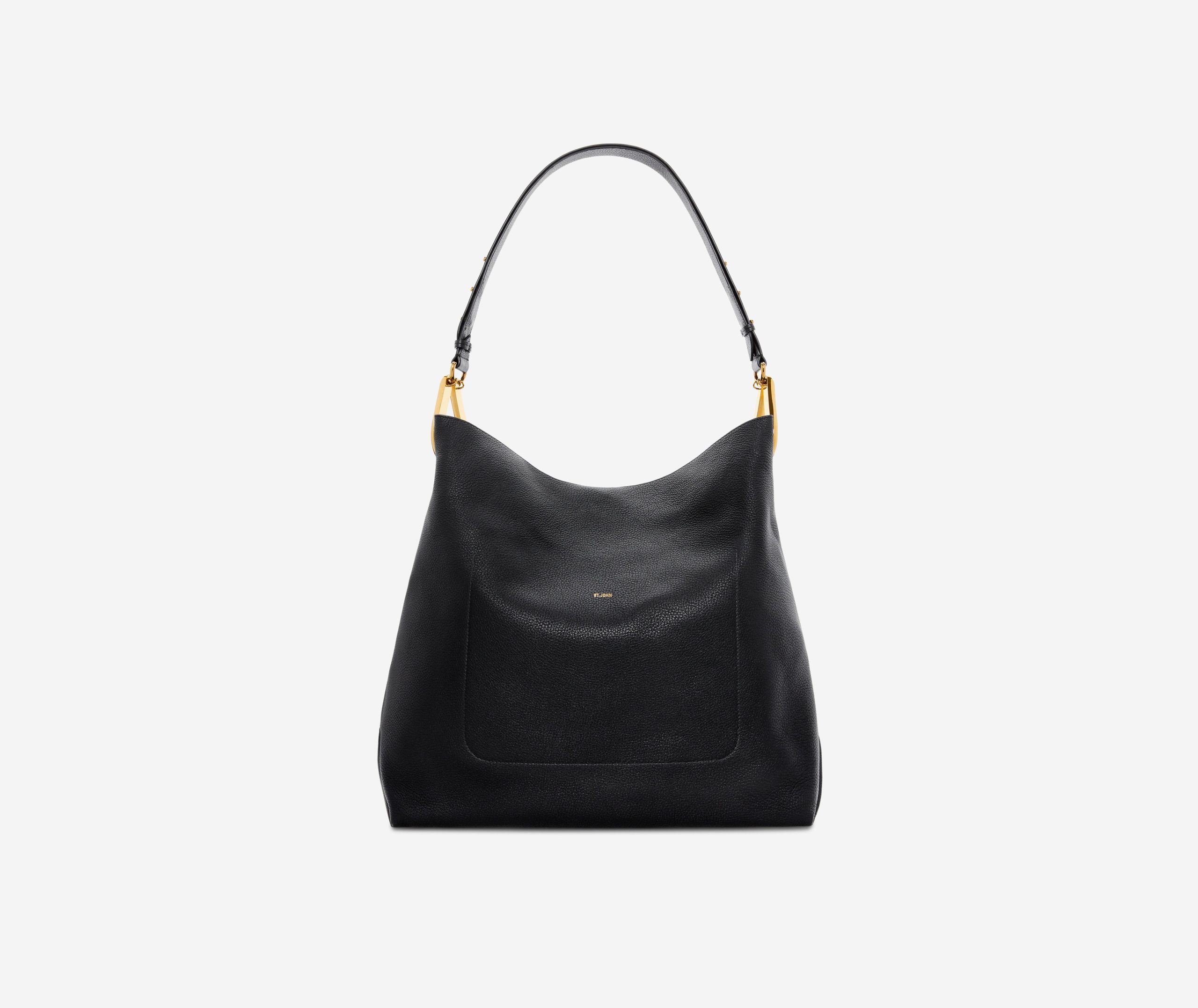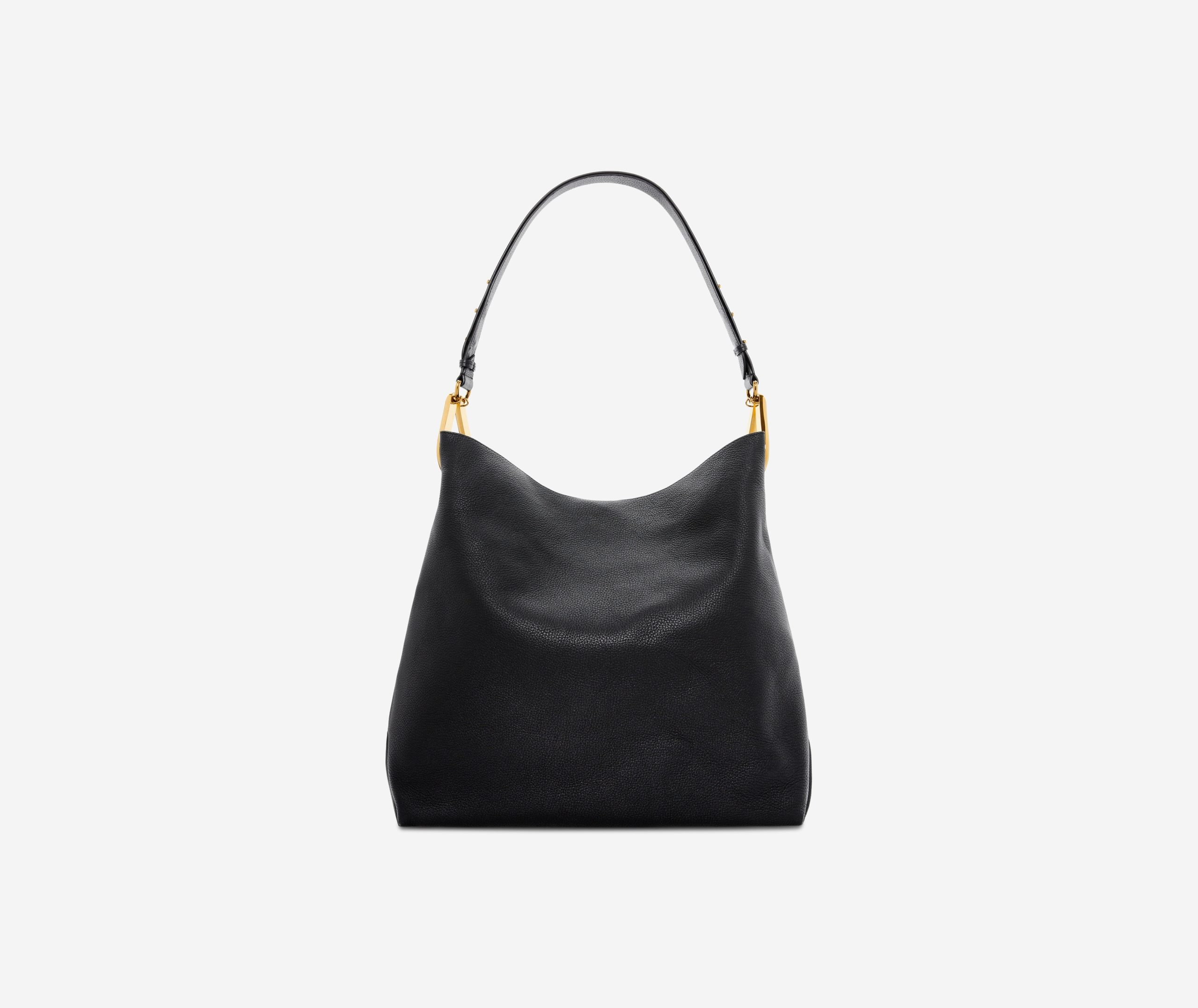 Leather hobo bag in grainy leather with notched top handle, signature loop design at sides, gold-tone accents, and interior side pocket.Modern, versatile and elevated; meet the perfect carryall in a roomy silhouette. Offers complimentary delivery and returns.Delivery and Return Policy