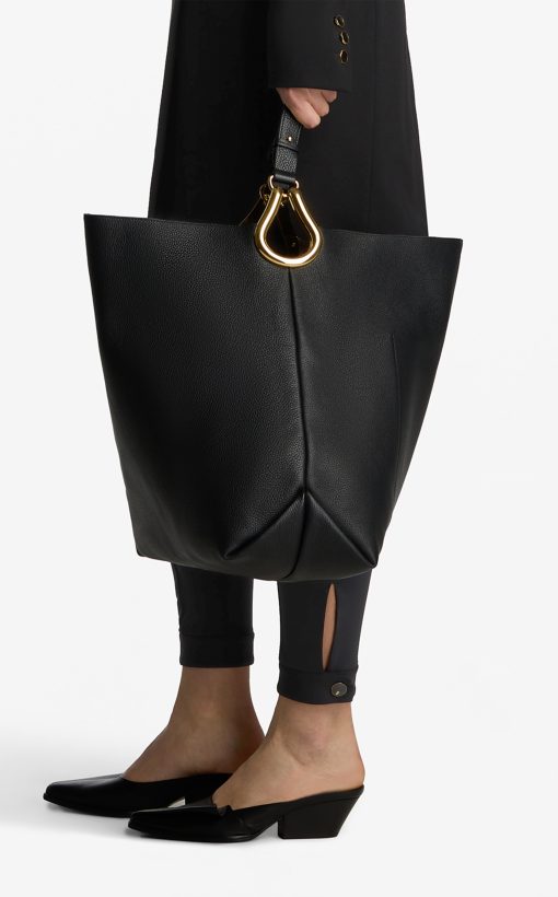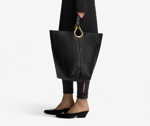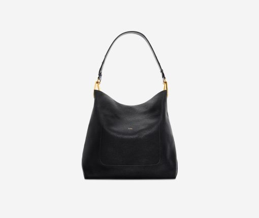 Leather hobo bag in grainy leather with notched top handle, signature loop design at sides, gold-tone accents, and interior side pocket.Modern, versatile and elevated; meet the perfect carryall in a roomy silhouette. Offers complimentary delivery and returns.Delivery and Return Policy