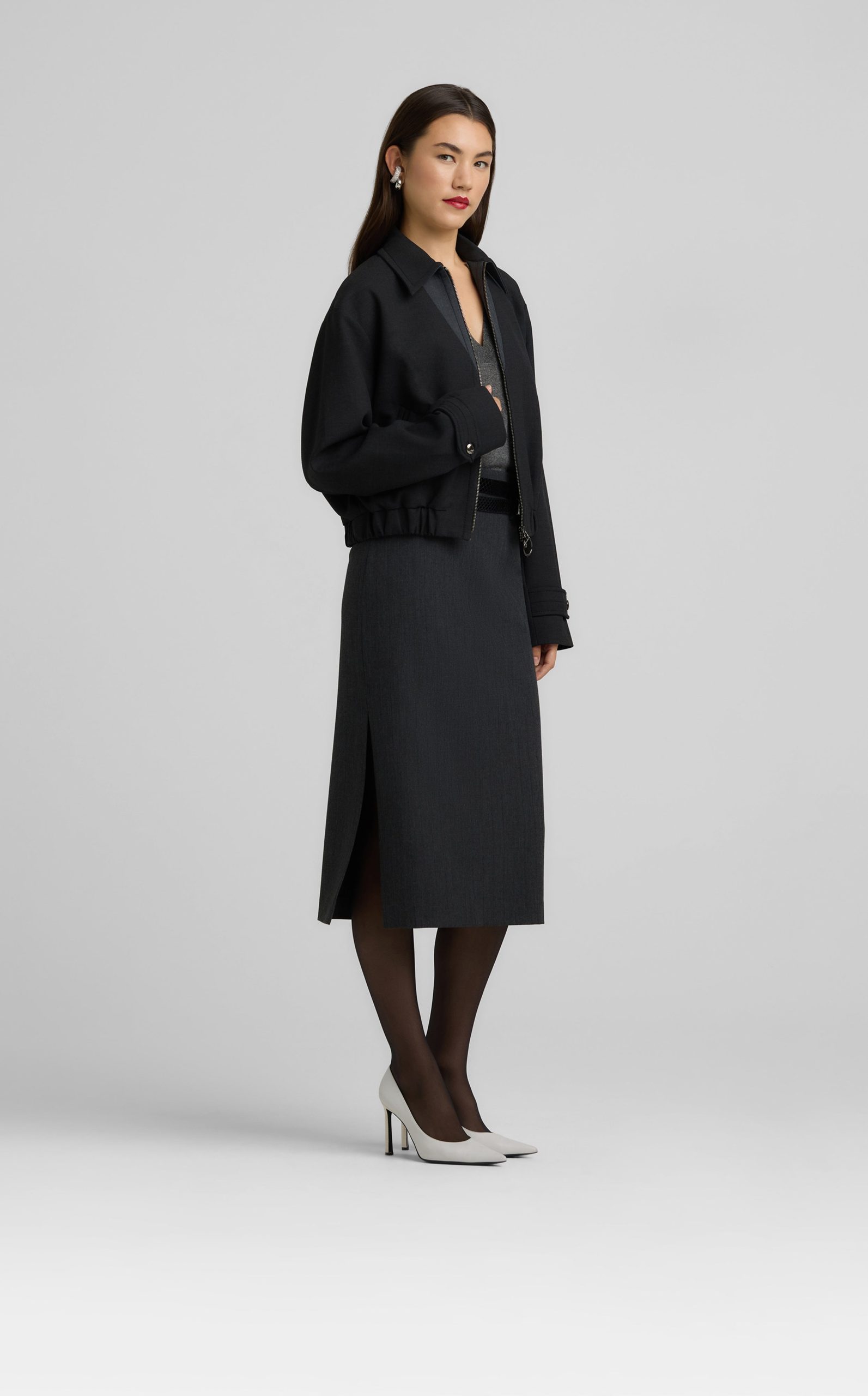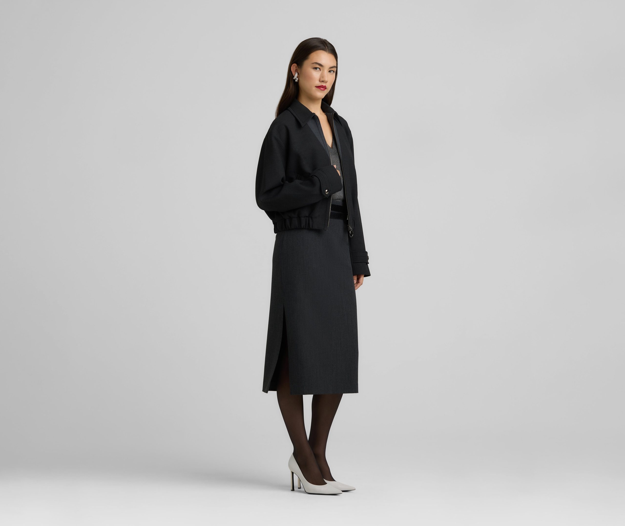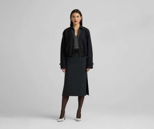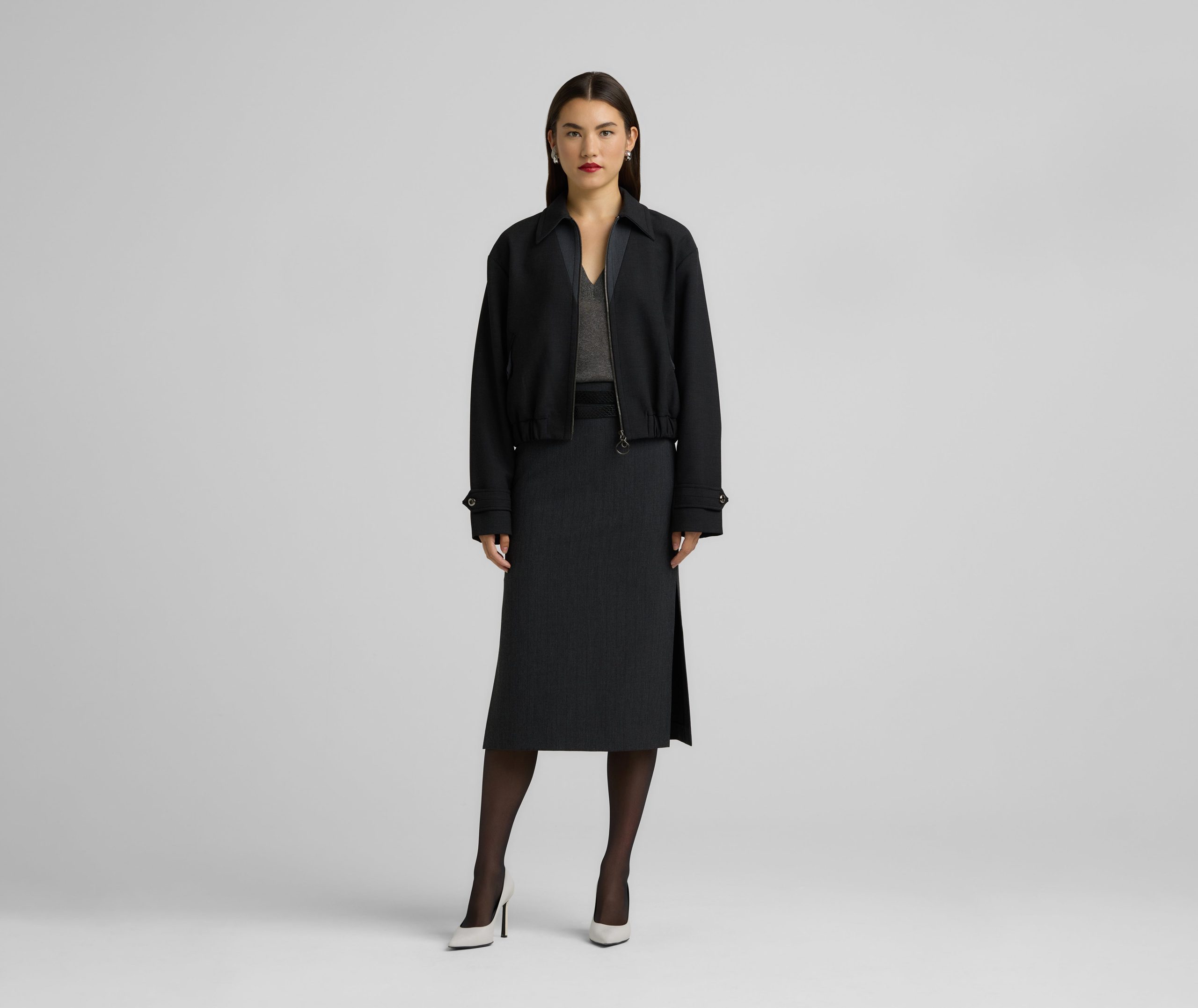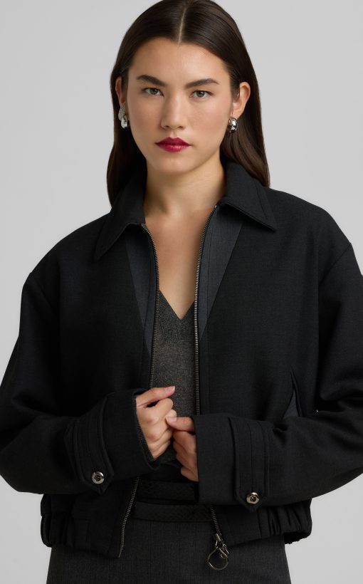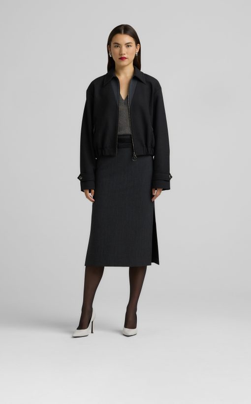 Between a barn jacket and a bomber lies this ultra-versatile luxe ponte piece, a collared zip-front style that can veer sporty or more refined.All Sales are Final. No Returns or Exchanges.