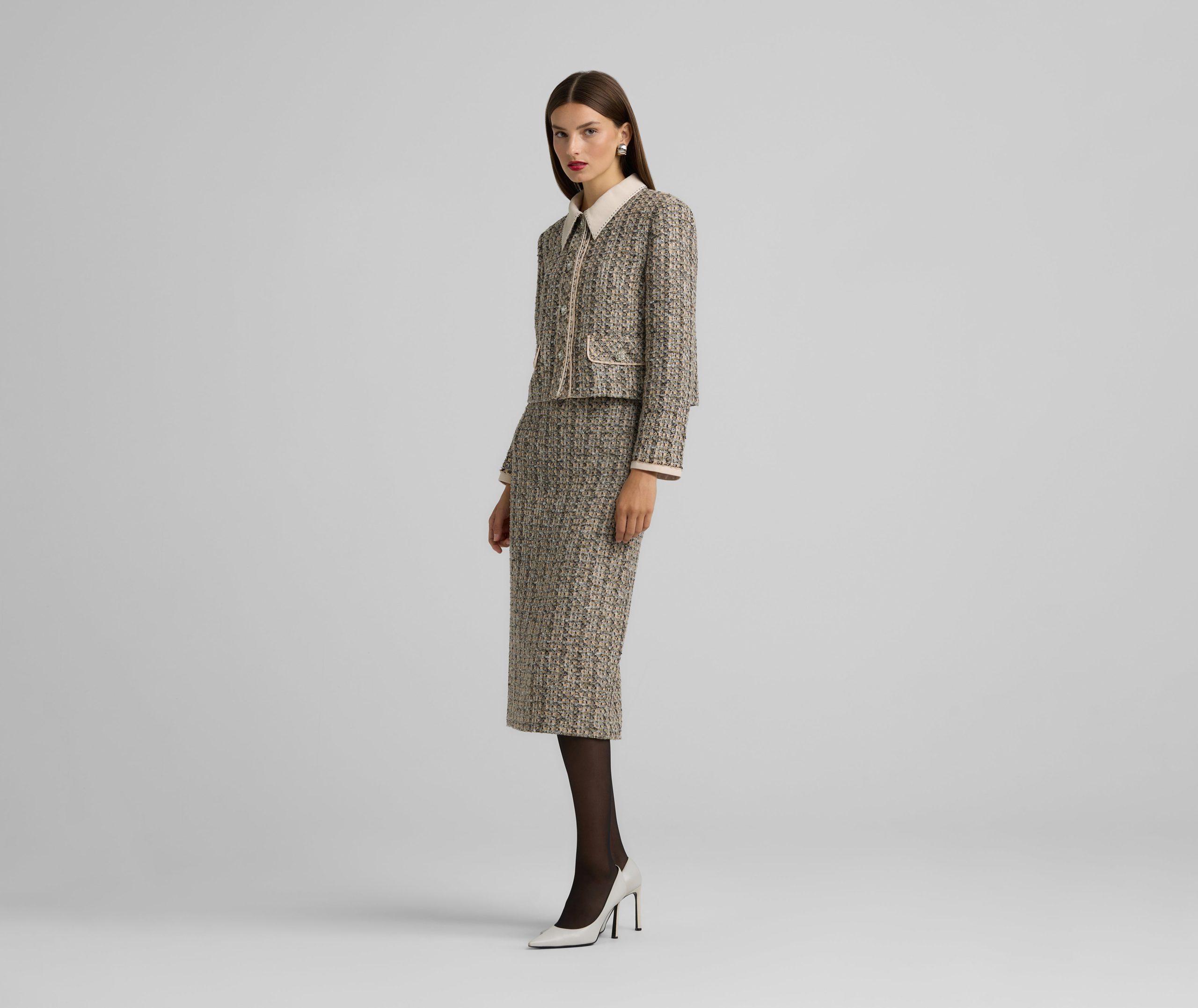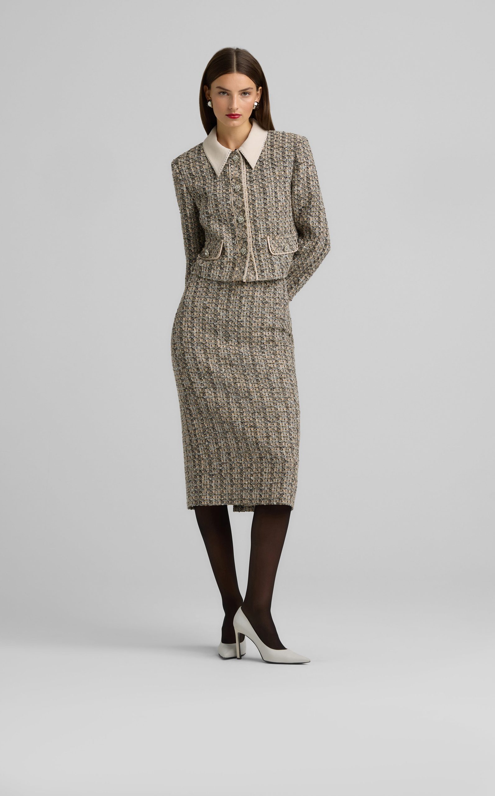 St.John Women’s Metallic Tweed Collage Skirt | Pink Blush & Shadow Multi