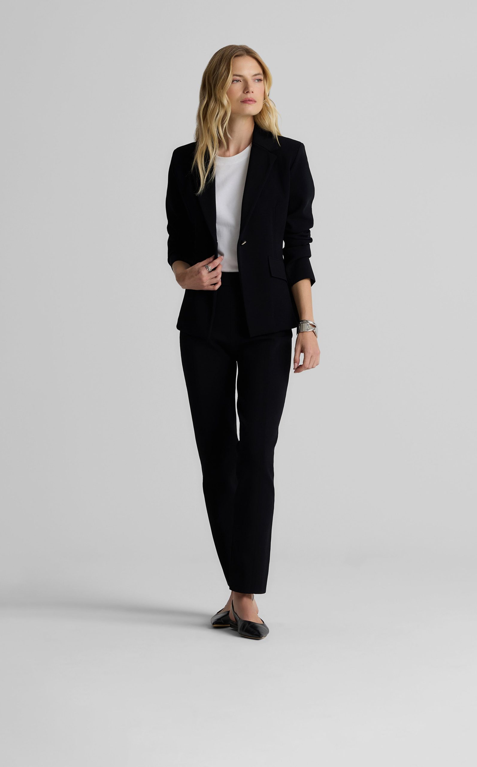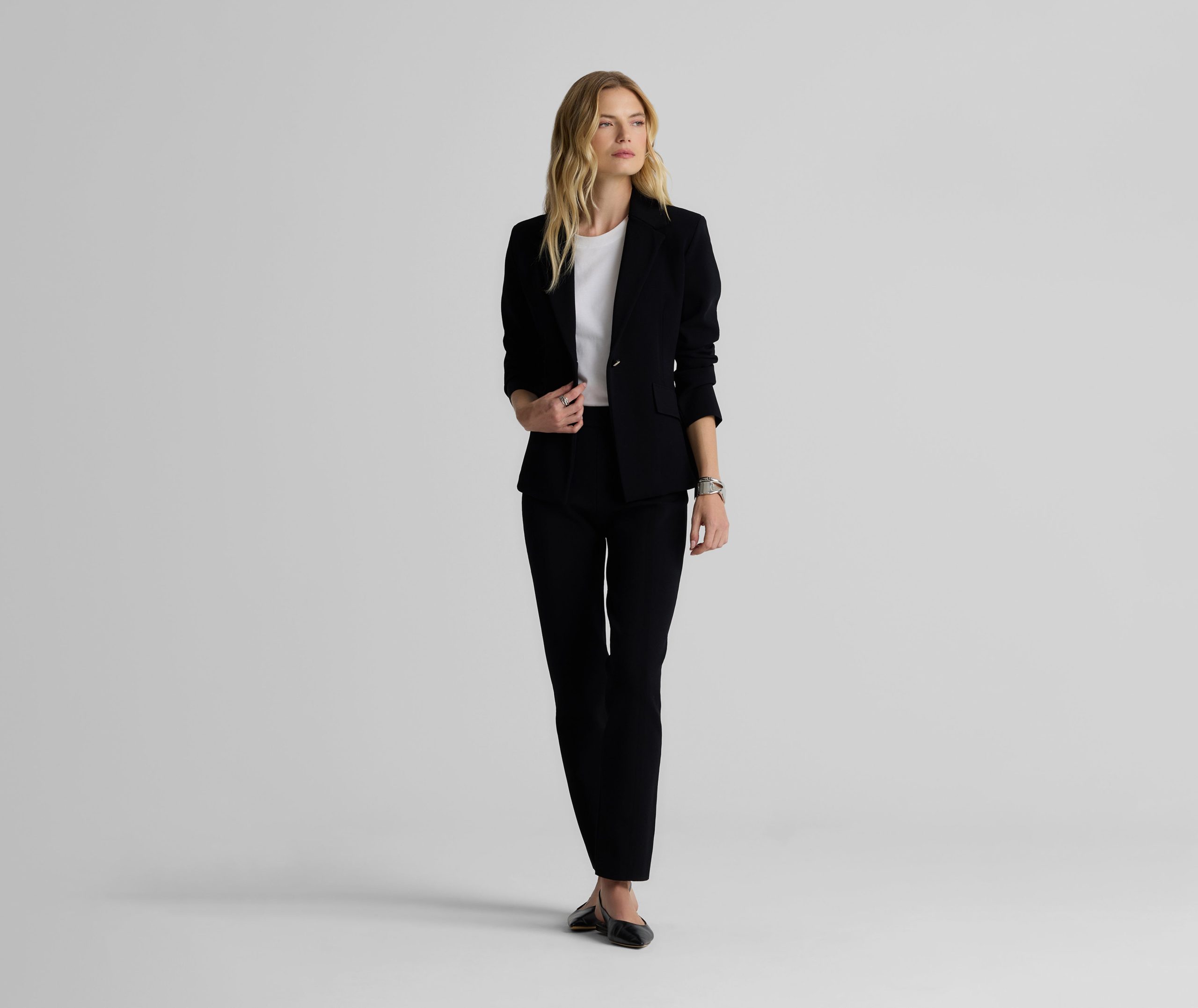 The new power suits are sleek and streamlined. Paired with our coordinating Harper Jacket, the Quincy in classic Black creates the most elegant combination for all your elite events. But with its elongating center seam and discreet side zipper, this polished pair of pants—made from our comfortable Santa Rosa Knit—also works beautifully with a myriad of sweaters, blouses, and blazers to take you from the office to dinner dates and beyond.