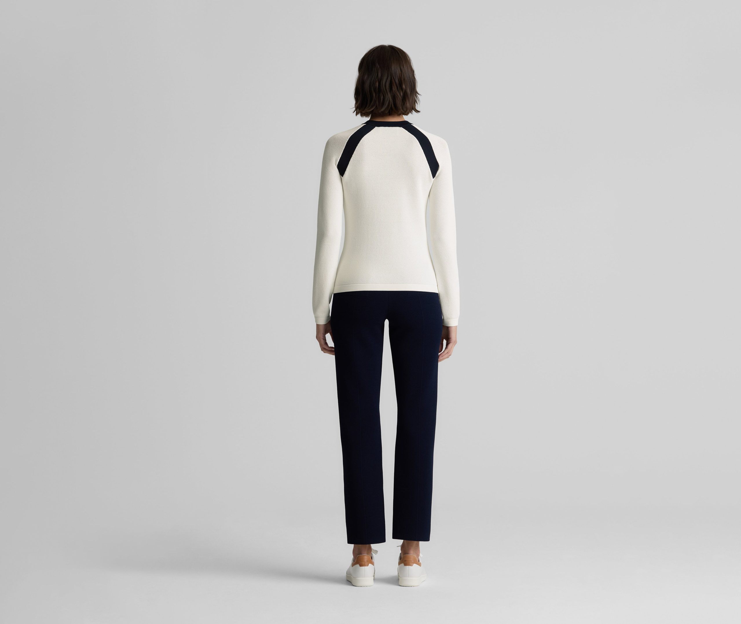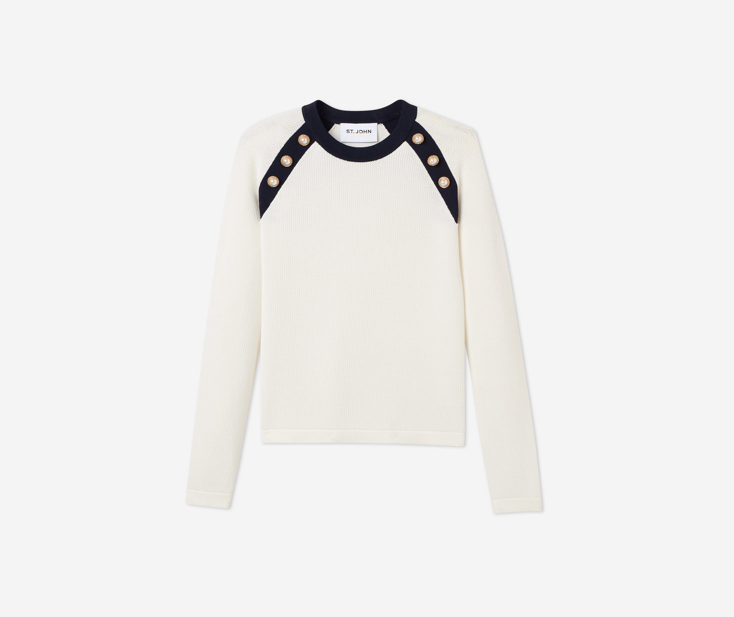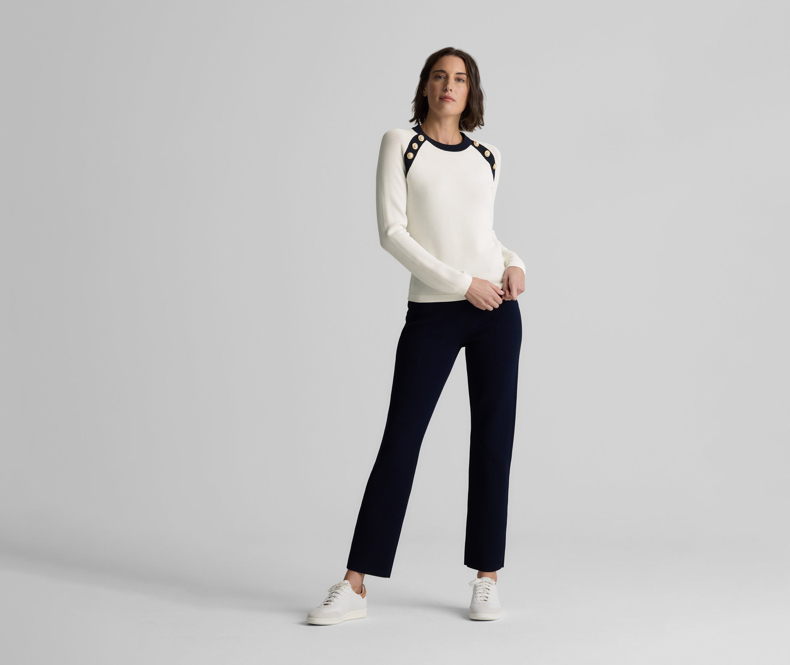 Created in an exclusive collaboration with influential golf brand Malbon, the Sheryl upgrades classic course style with a touch of glamour. Designed in our flexible Contrast Knit for comfortable wear on or off the green, this sleek sweater features slim, straight raglan sleeves accented with pearl buttons, plus Midnight trim for a look that’s classically sophisticated and totally versatile.