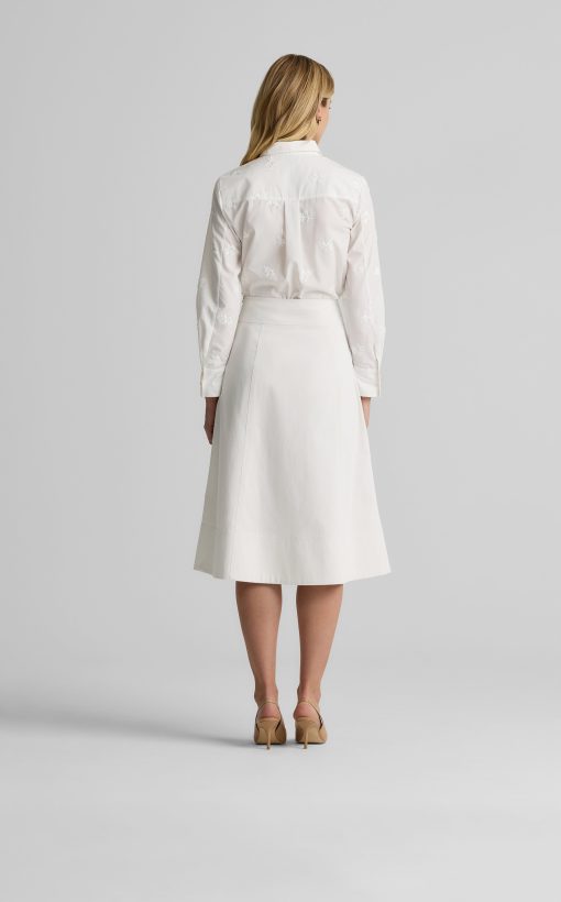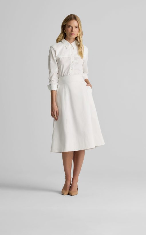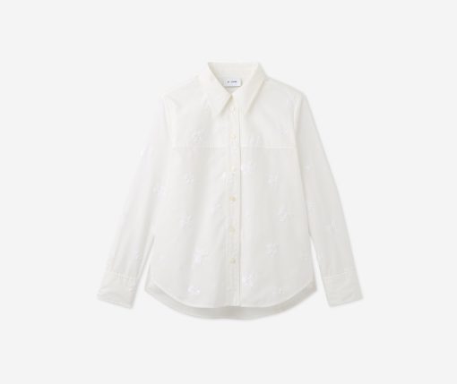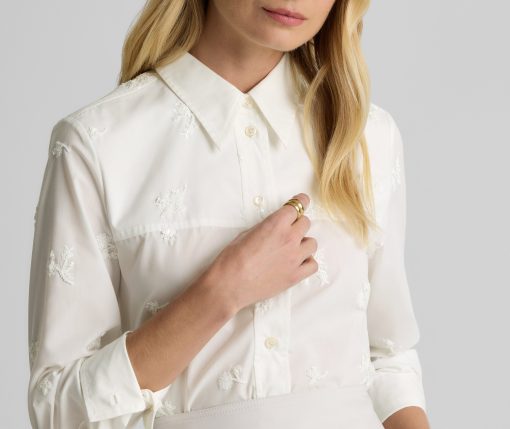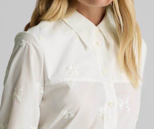 For a fresh, feminine take on the classic button-down blouse, the Tessa is a versatile yet elegant staple for the modern woman’s wardrobe. The sequin floral embroidery and horizontal front yoke give this tailored poplin top its distinctive appeal that subtly elevates any ensemble.