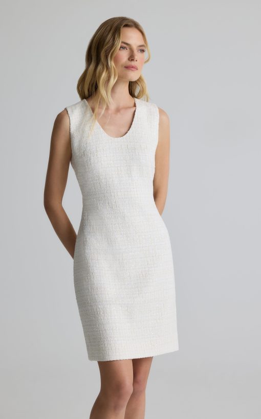 St.John Women’s Tweed Scoop Neckline Dress | Ivory