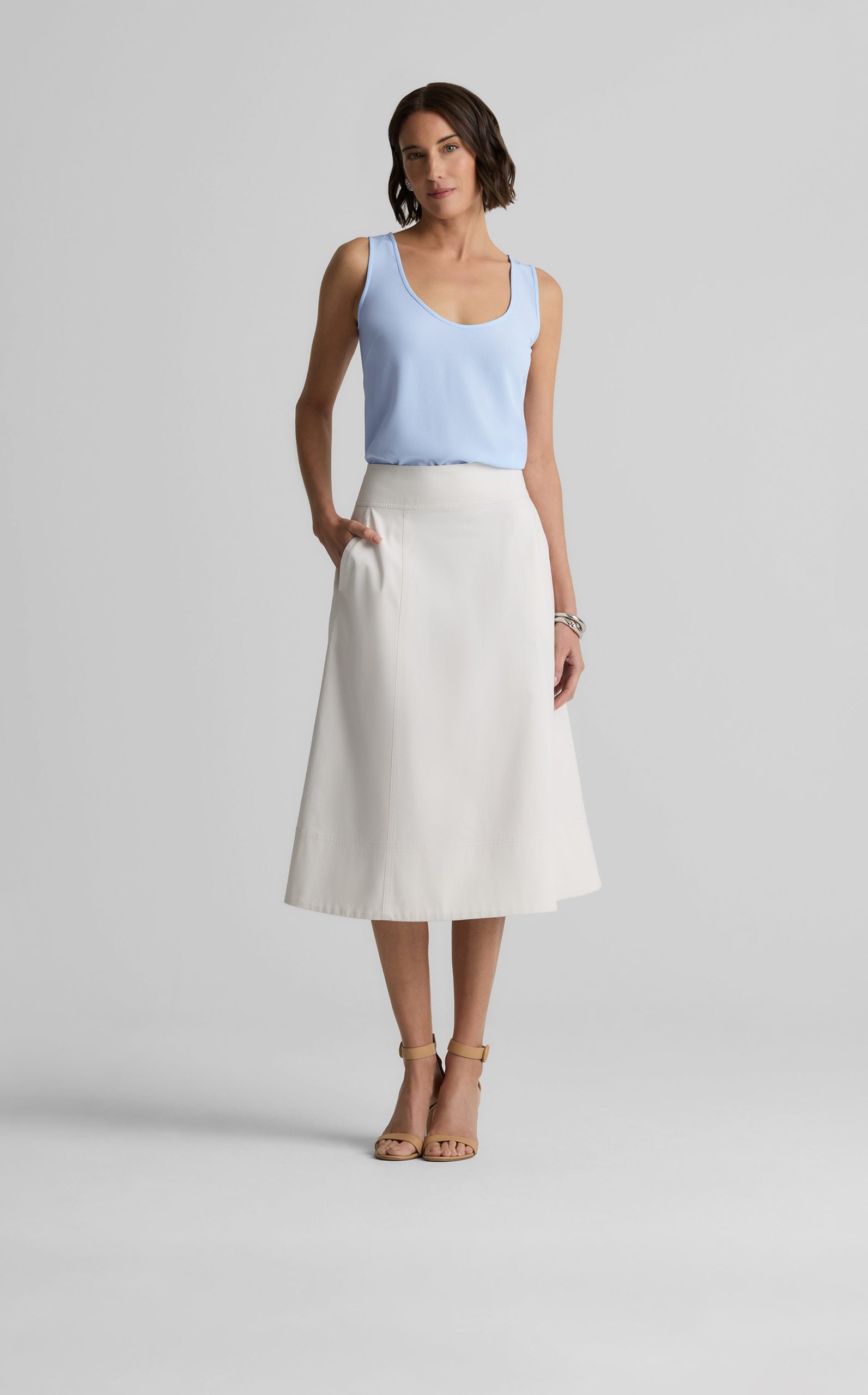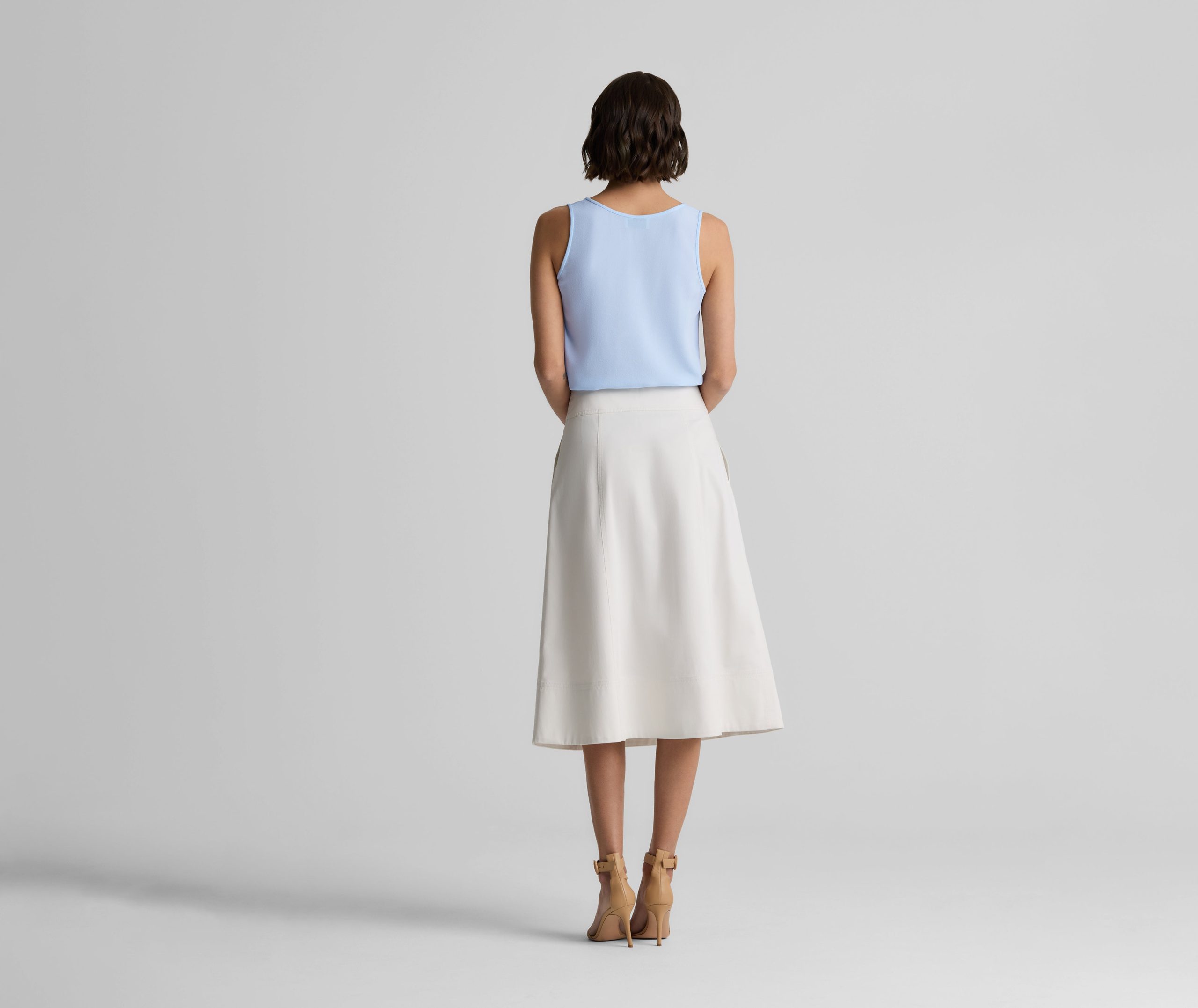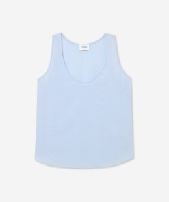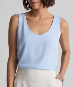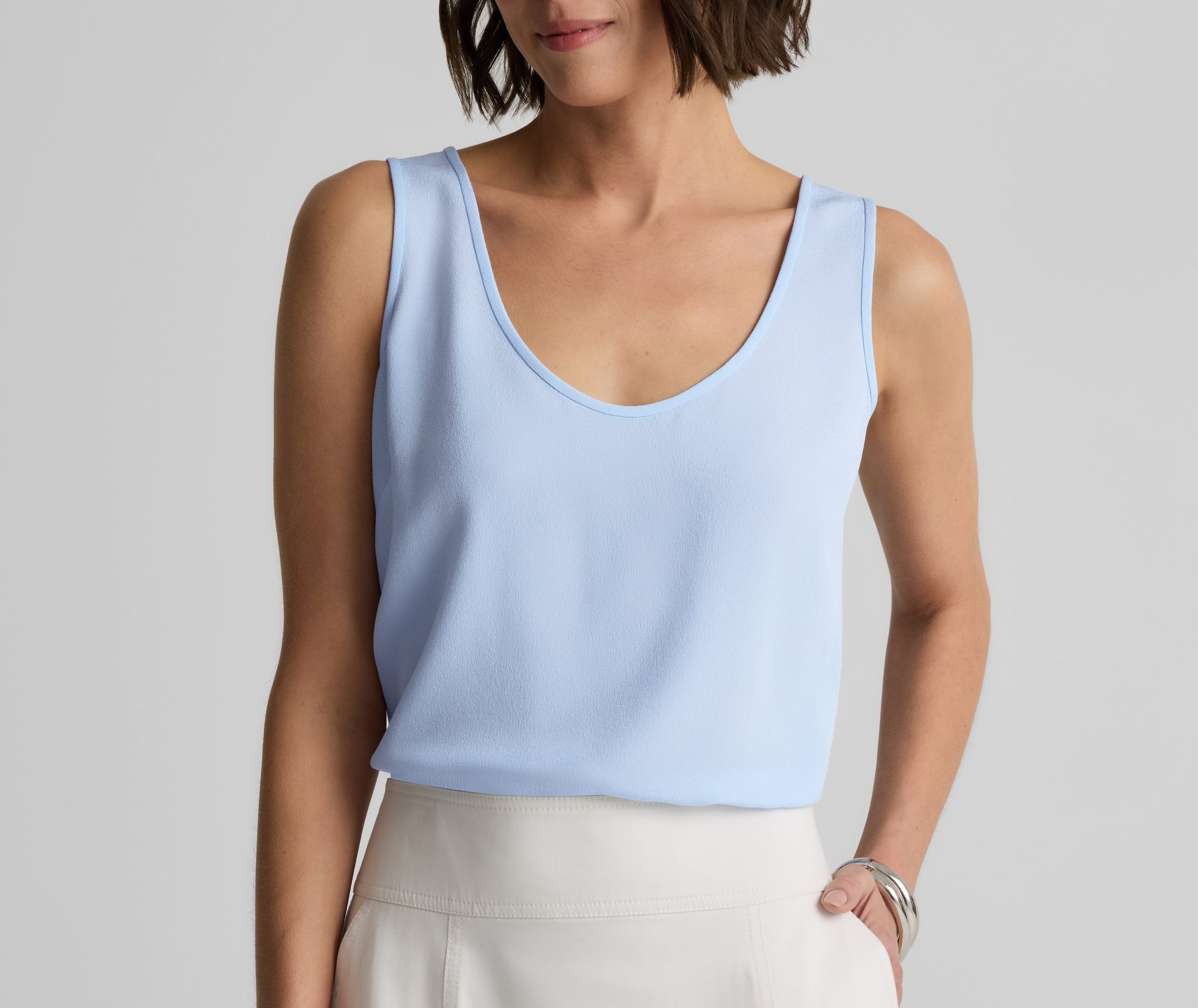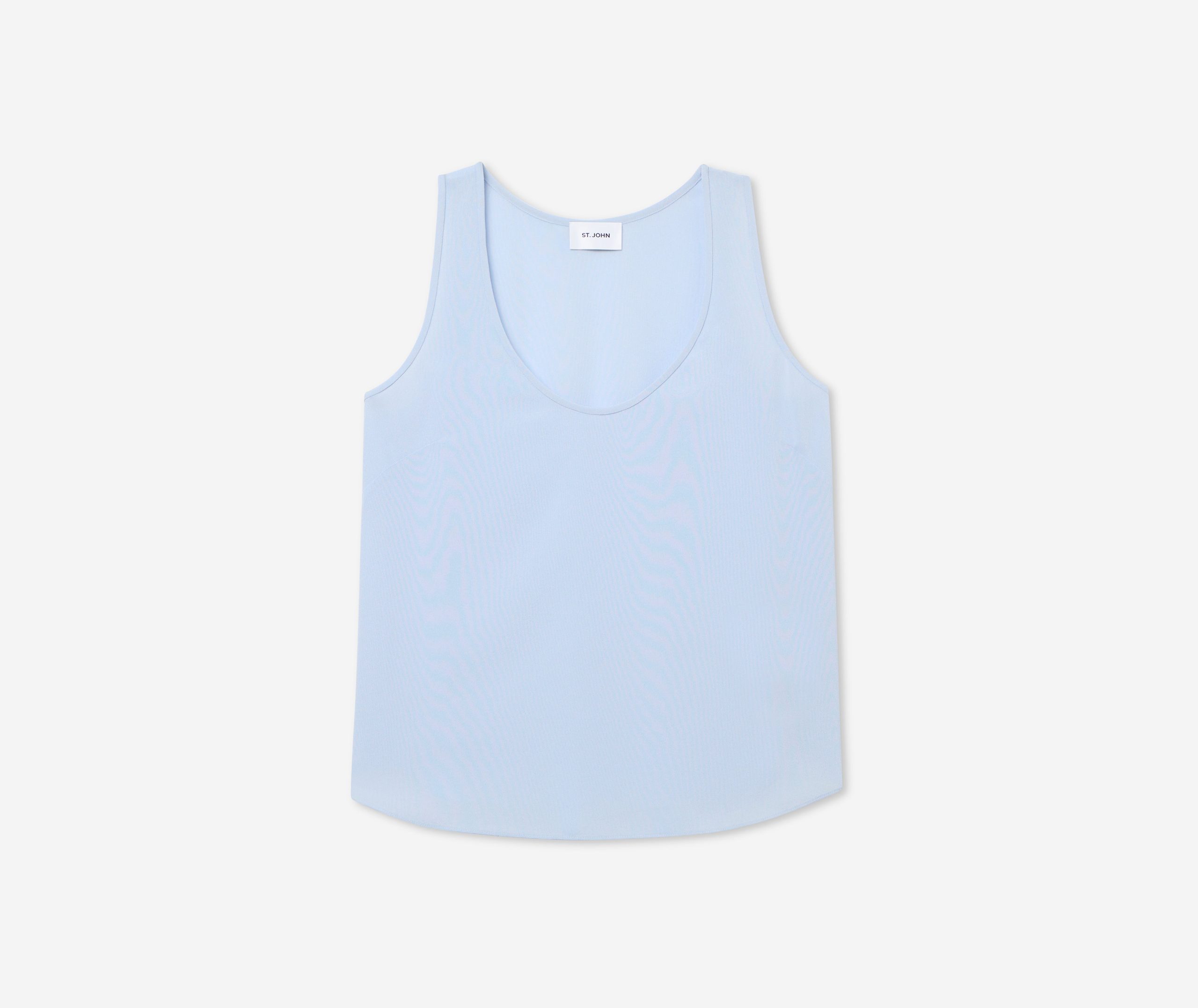In airy Blue Lagoon, the Vanessa layers luxuriously under blazers and leather jackets, but can also be worn on its own as a breezy but sophisticated top in warmer weather. The elegant drape from its fluid silk crepe as well as its graceful U-neckline transforms the classic shell into an elevated essential.