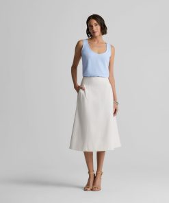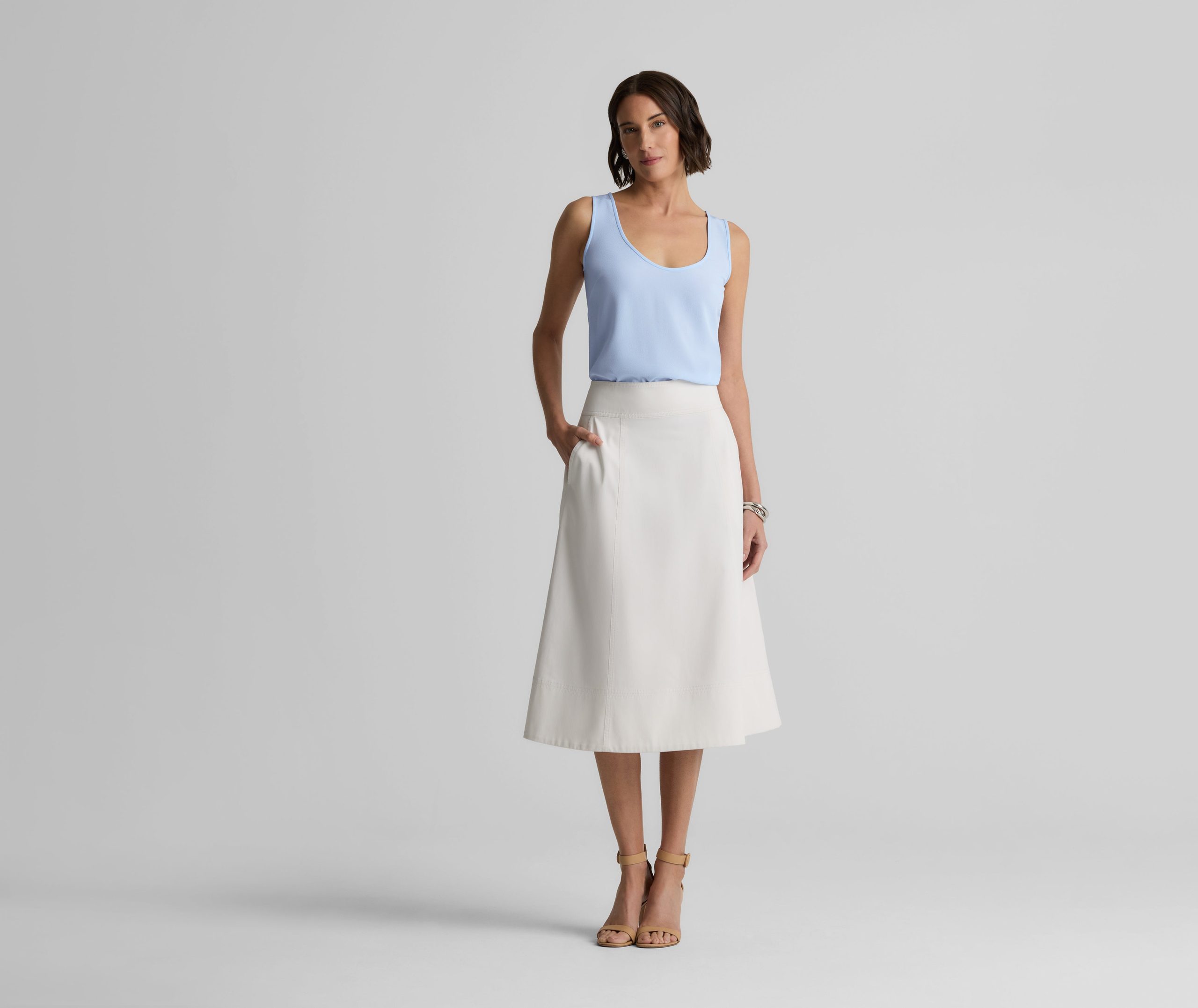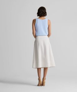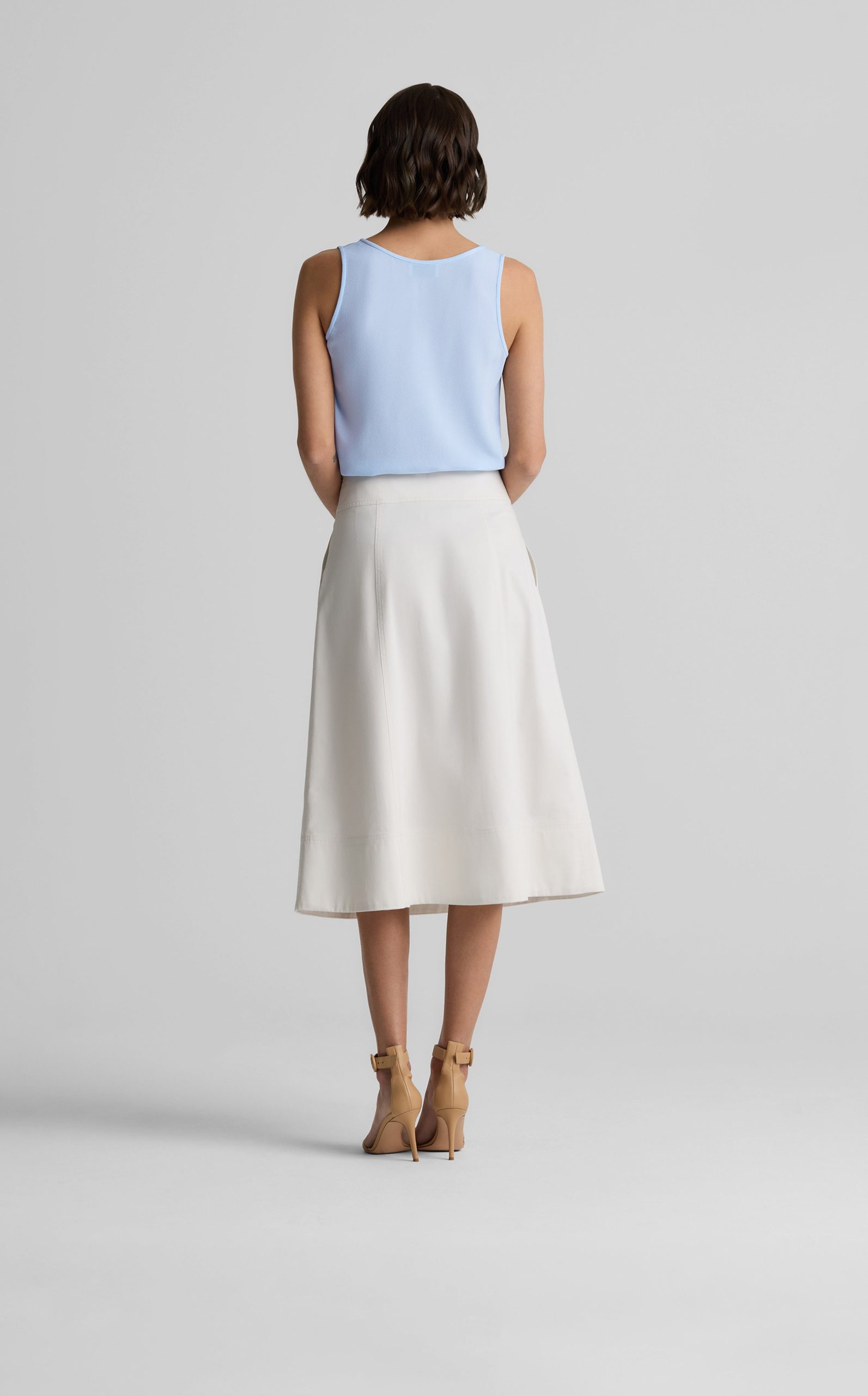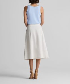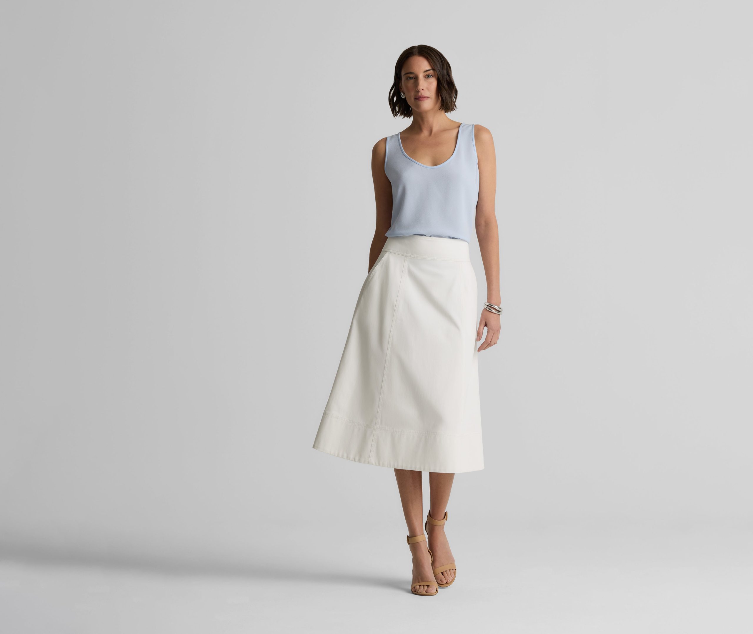 In airy Blue Lagoon, the Vanessa layers luxuriously under blazers and leather jackets, but can also be worn on its own as a breezy but sophisticated top in warmer weather. The elegant drape from its fluid silk crepe as well as its graceful U-neckline transforms the classic shell into an elevated essential.
