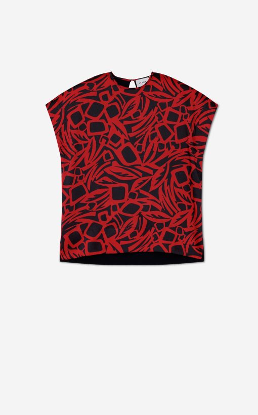 A vintage-inspired botanical print brings abstract art to this round neck, cap sleeve top with notes of leaves in the front and a solid back.All Sales are Final. No Returns or Exchanges.